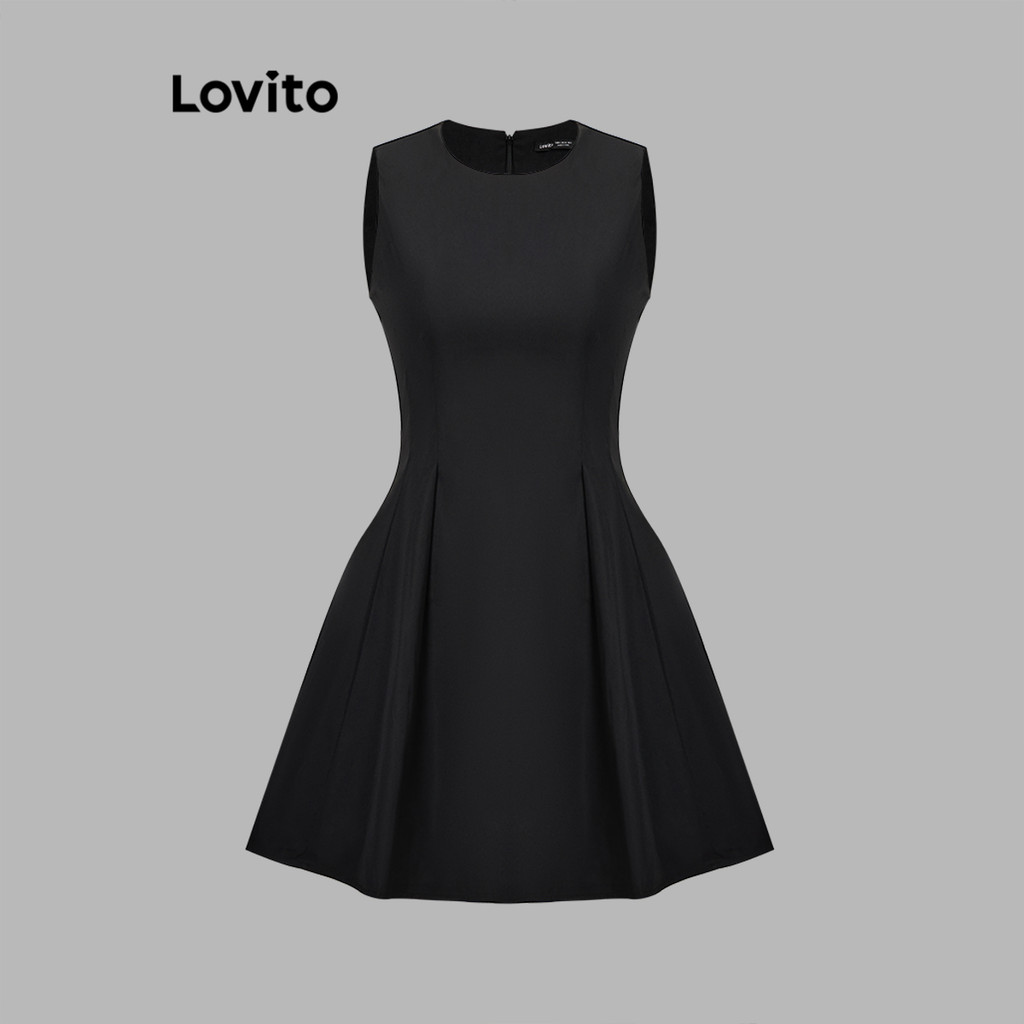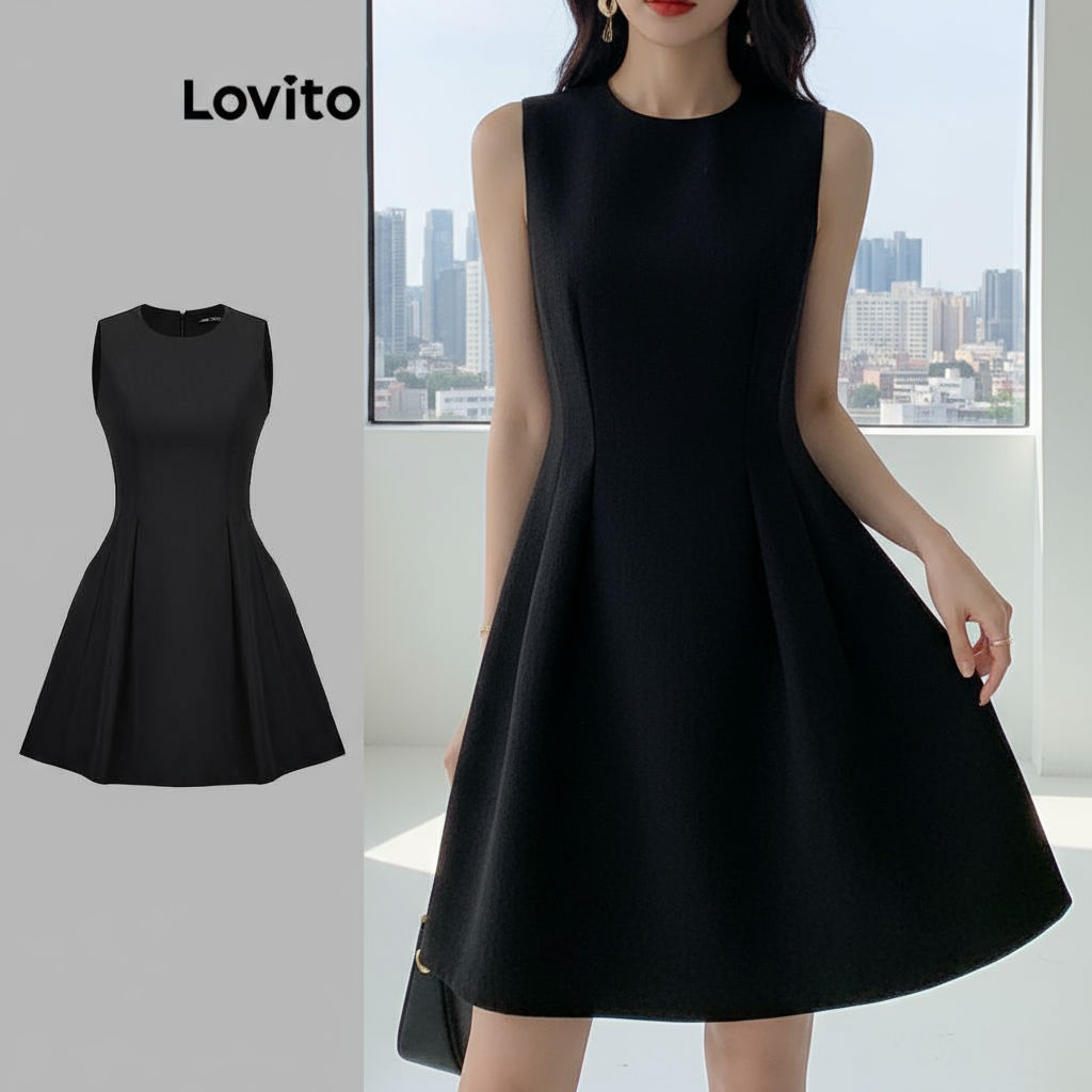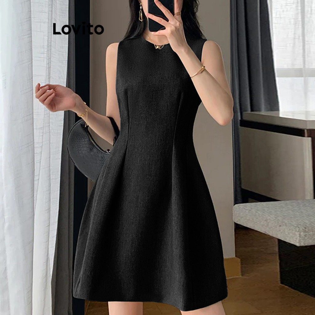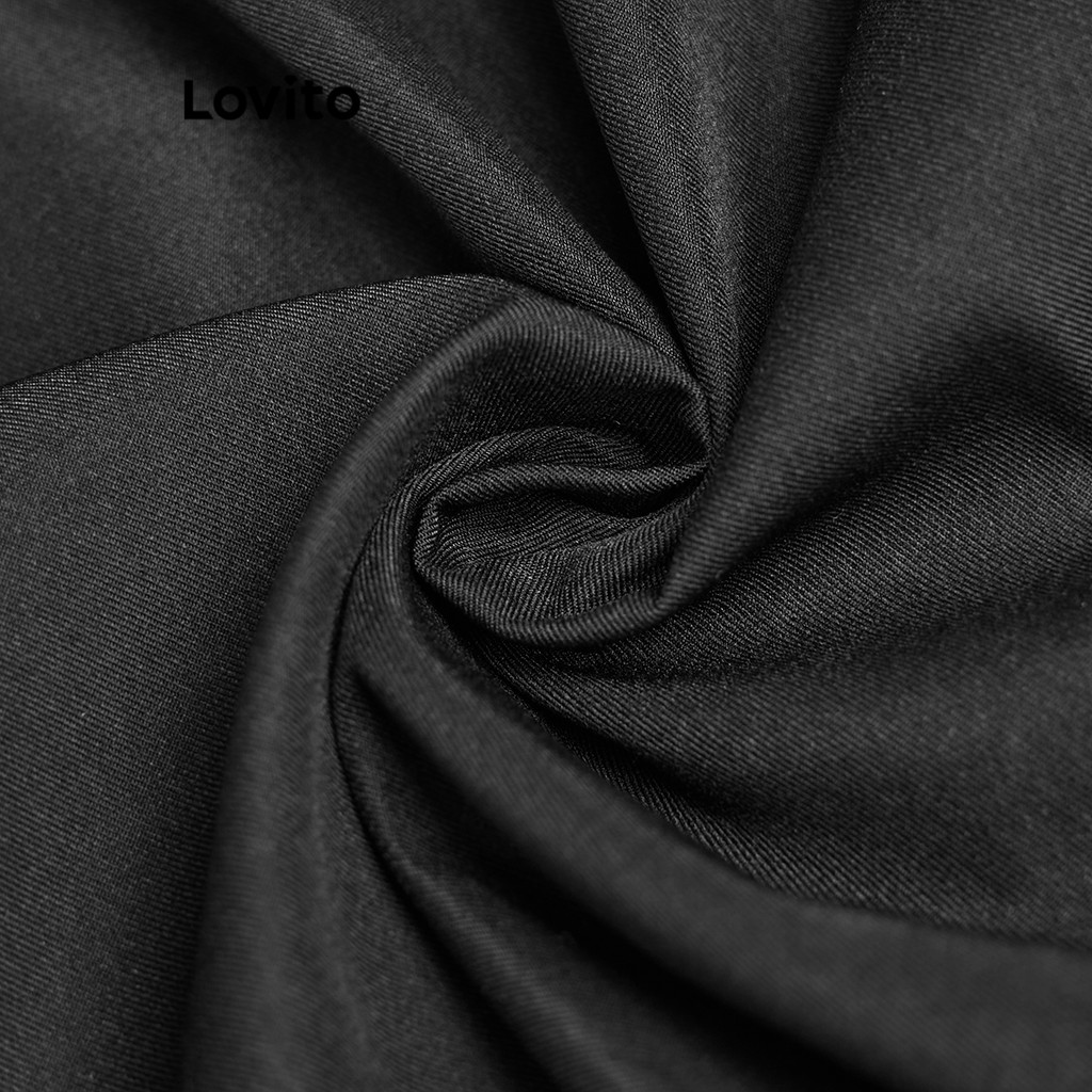 Lovito Vestido Feminino Casual Drapeado Liso e Estruturado L109MD178