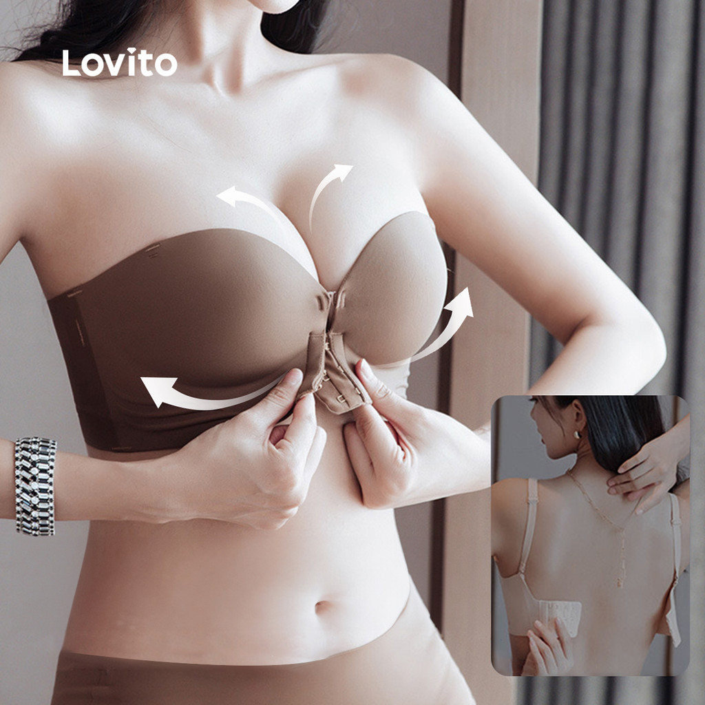(Trendy2) Lovito Bralette Casual De Pele Macia Com Botões Na Frente Sutiã De Verão Para Mulheres LNM66068