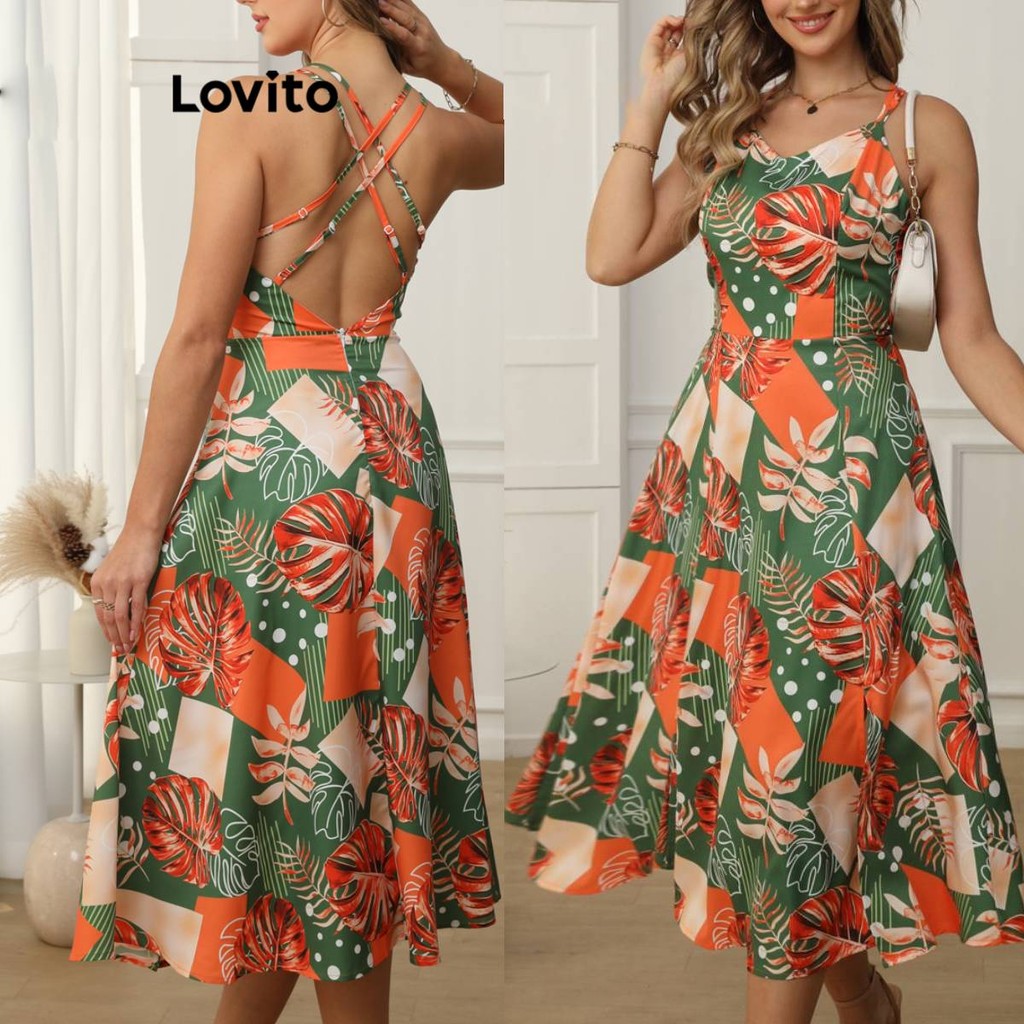Lovito Vestido Feminino Boho Floral com Estrutura para Verão/Primavera LBL19200