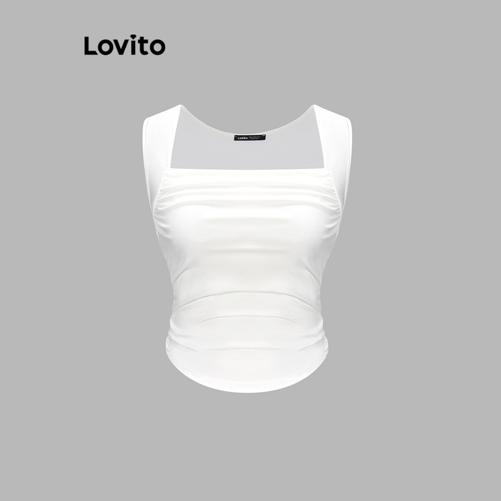 Lovito Regata Casual Lisa Com Bainha Franzida Para Mulheres L62ED045\2