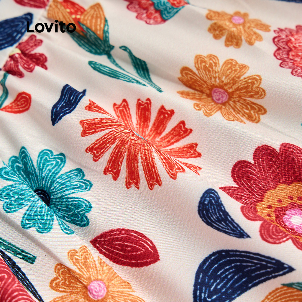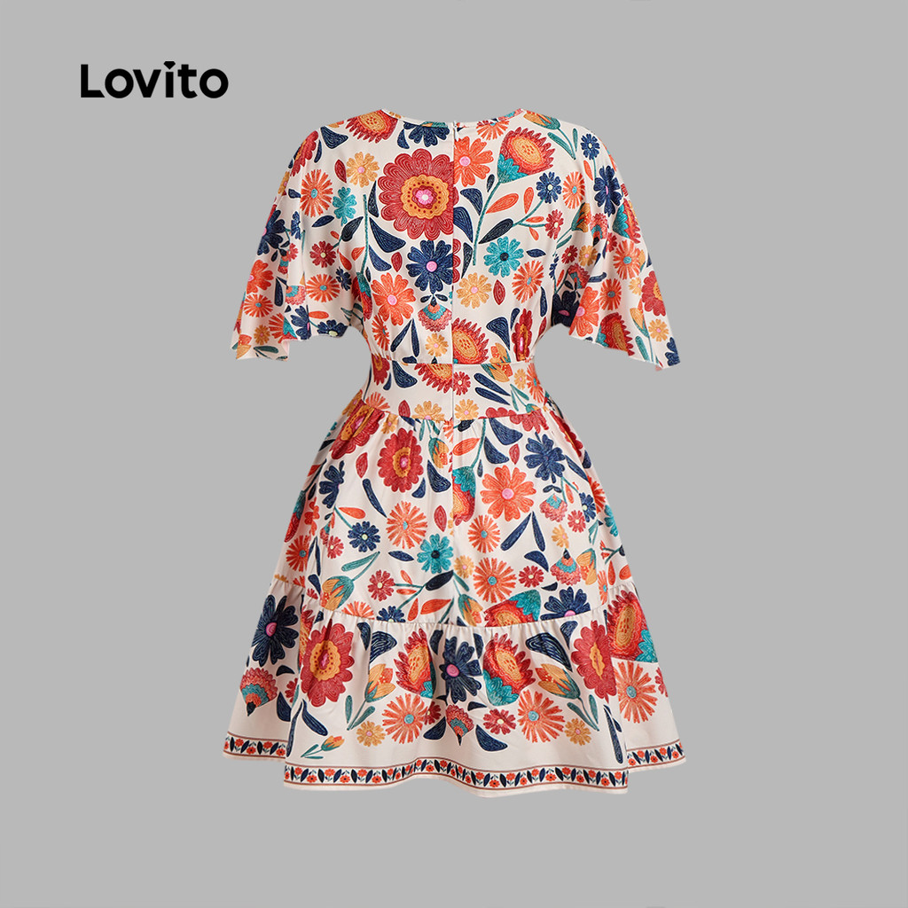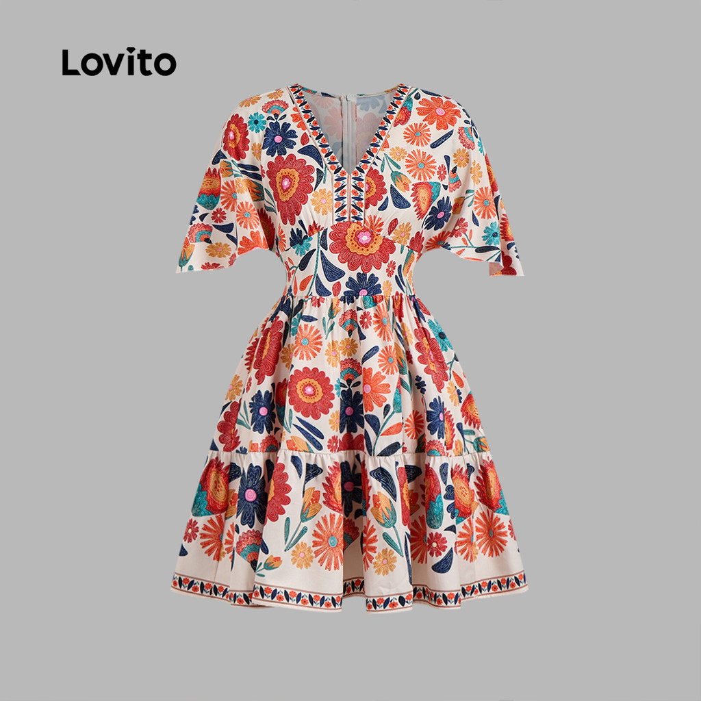 (Trendy) Lovito Vestido Boho Padrão Vestido Multicolor Primavera/Verão Para Mulheres L135ED250