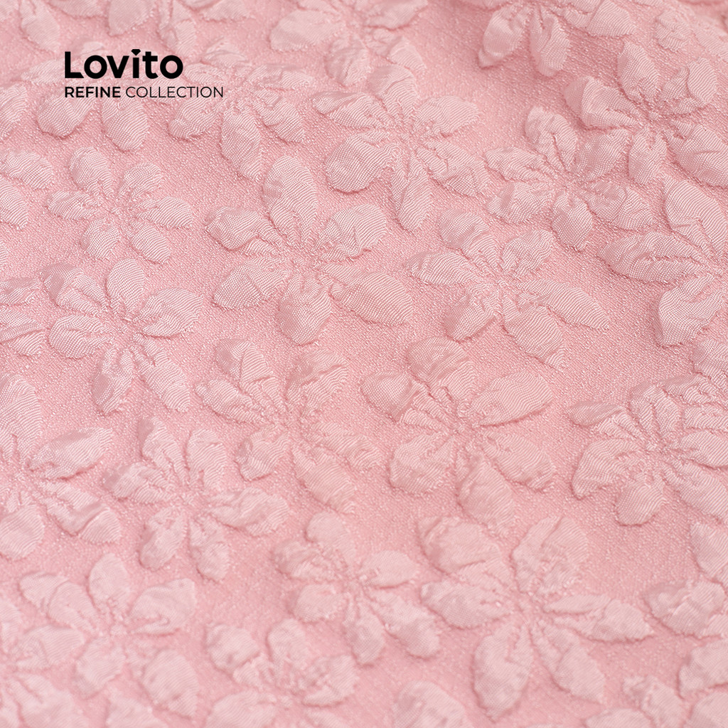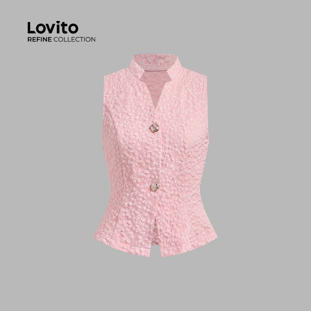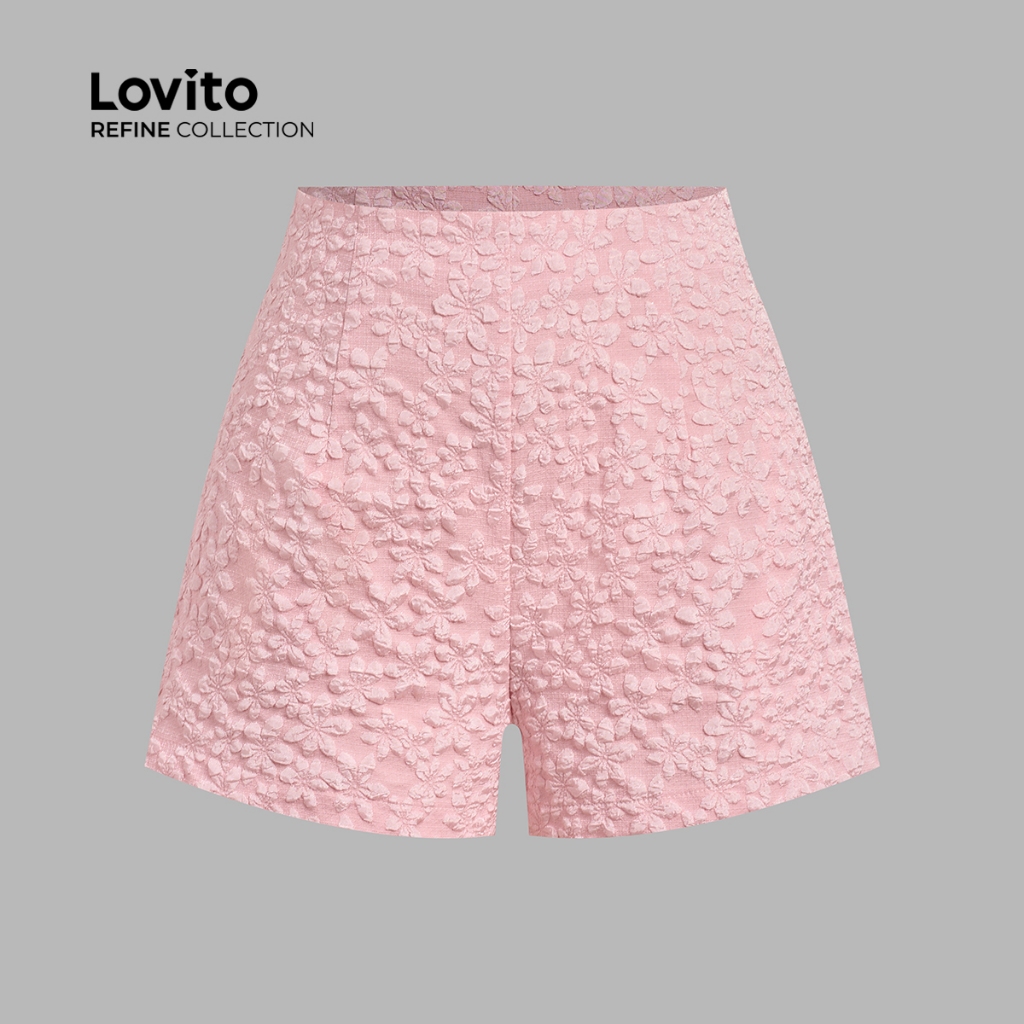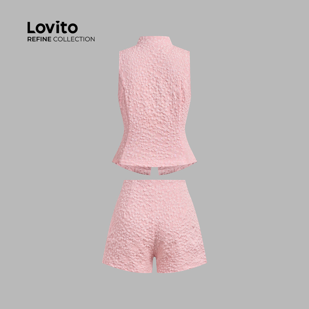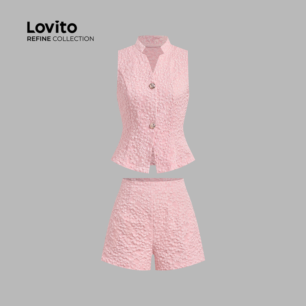 (NEW) (Lovito Refine) com Estrutura de Botões Linha Primavera/verão Blusa Rosa e Shorts para Mulheres LR13E060