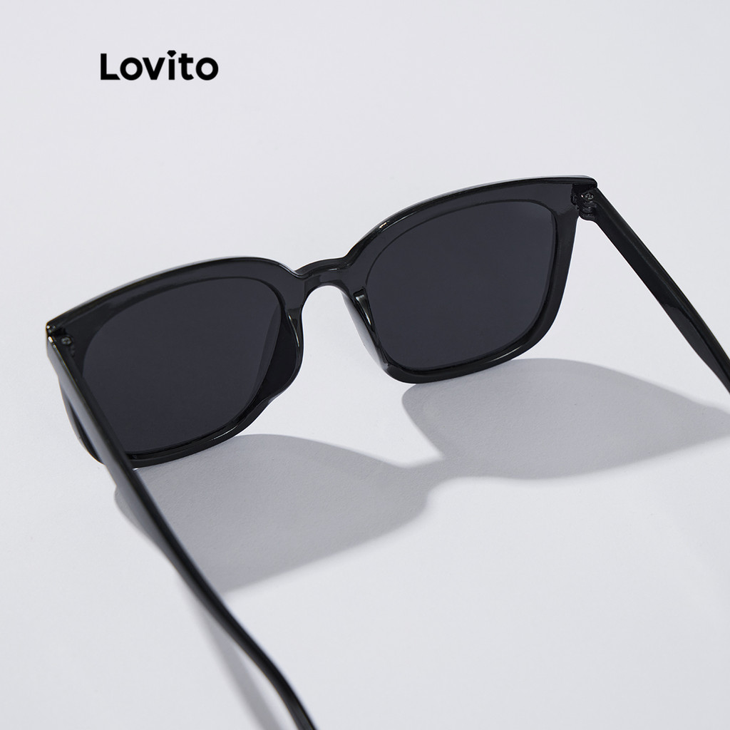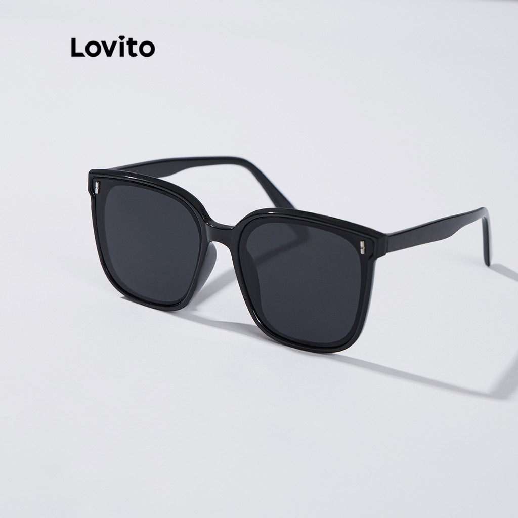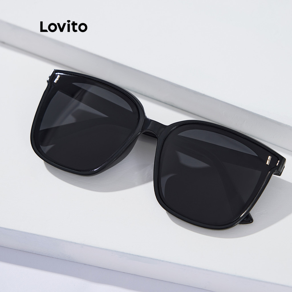 (Trendy2) Lovito Óculos De Sol Casuais Lisos, Combinados, Básicos, De Aro Completo, Para Mulheres L34AD057 (Preto)