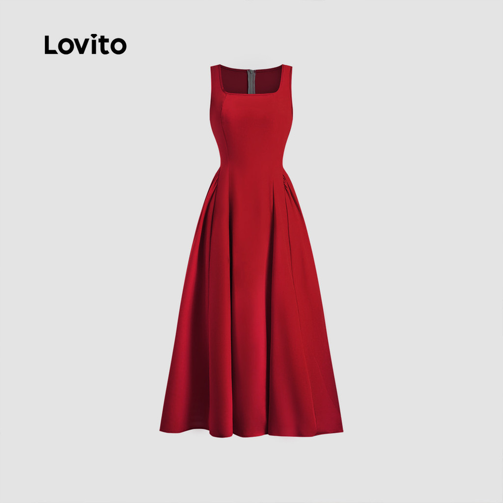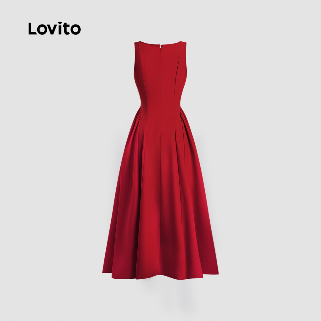 (NEW) Lovito Vestido Elegante de Plissado Primavera/verão Vermelho para Mulheres LBL29083