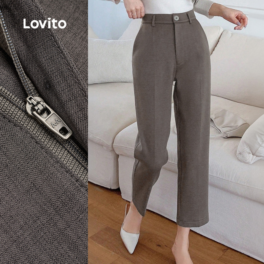 Lovito Calças Elegantes Clássicas e Versáteis Calças de Outono/inverno Cor de Chocolate para Mulheres L155ED1419