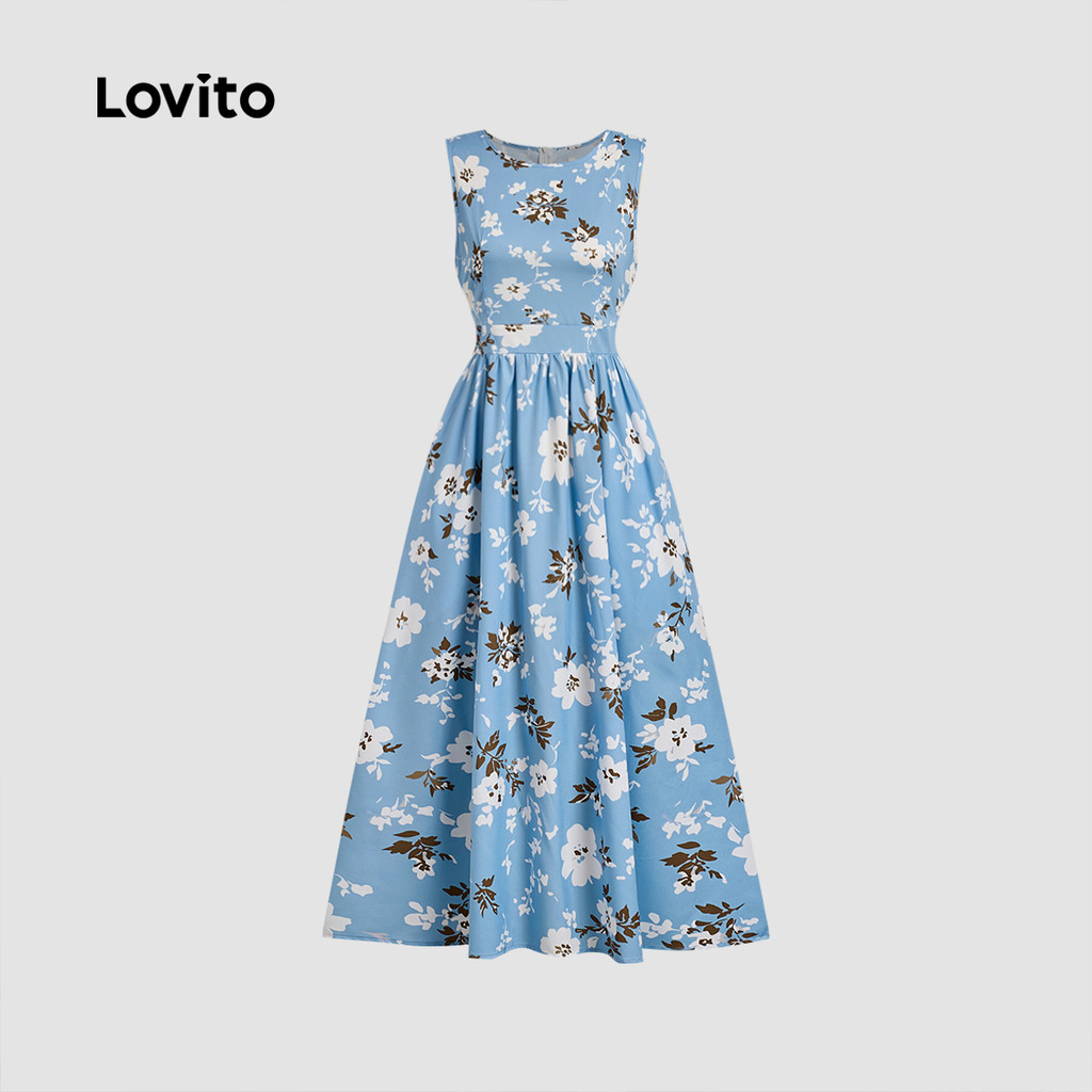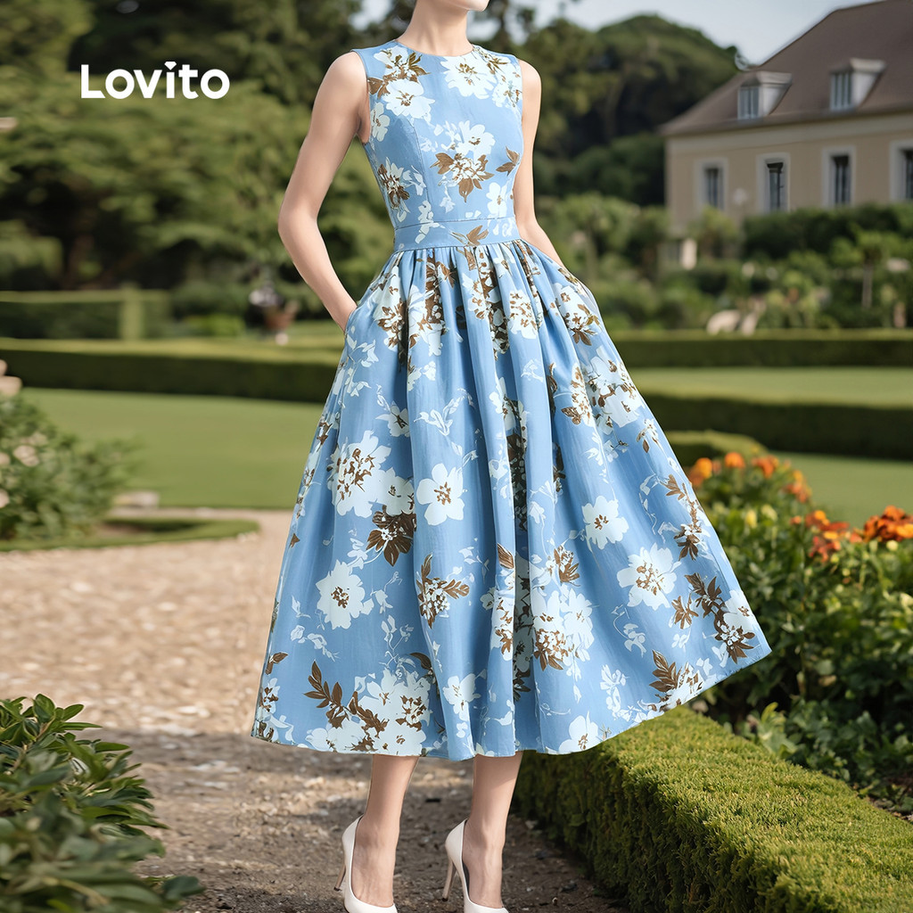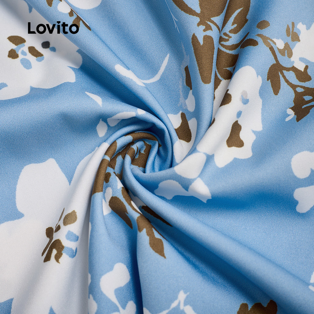 Lovito Refine Vestido Casual com Babados Na Barra e Bolso para Primavera/Verão Azul Feminino L138ED544