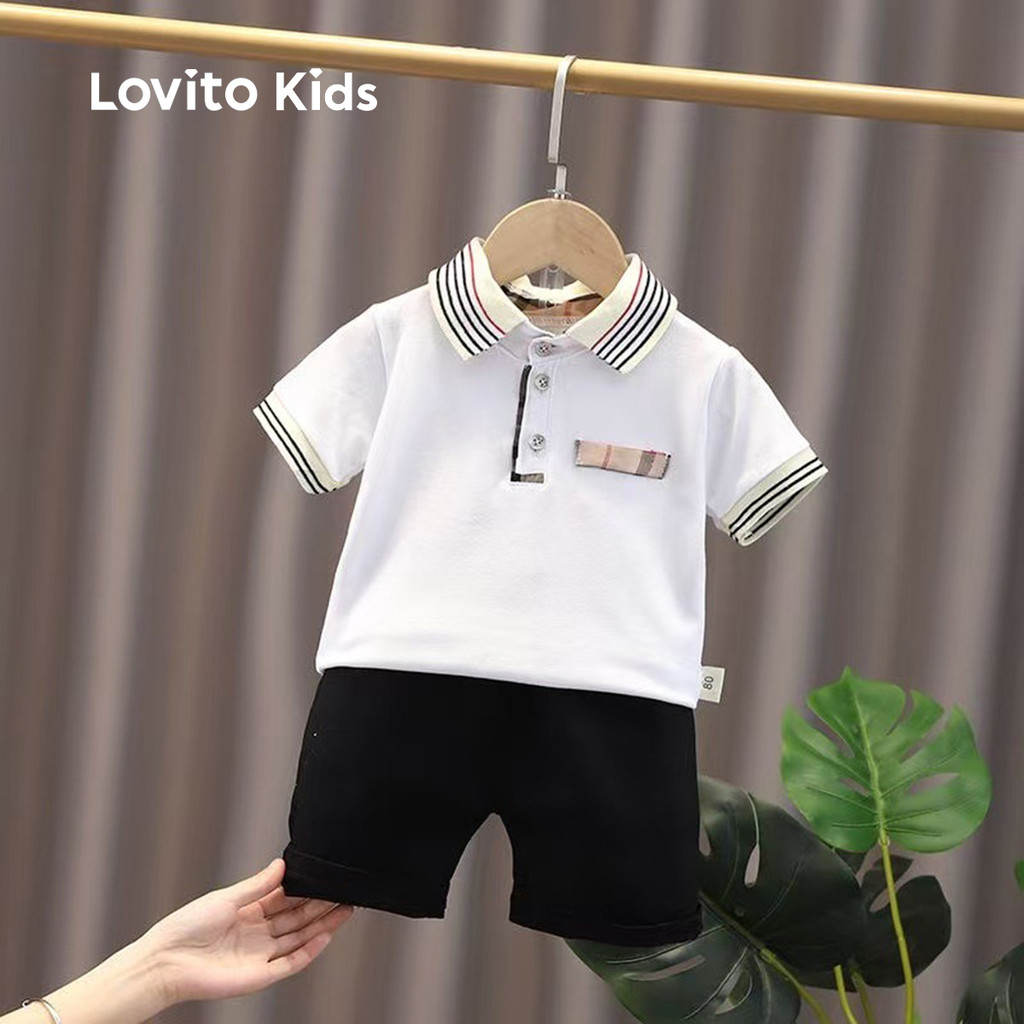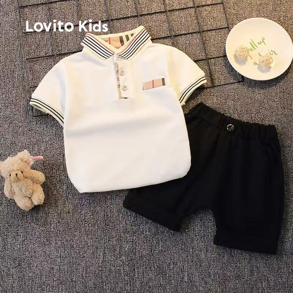 Lovito Kids Conjuntos de Shorts Fofos Conjuntos de Shorts Brancos de Primavera/verão para Meninos LNL128111