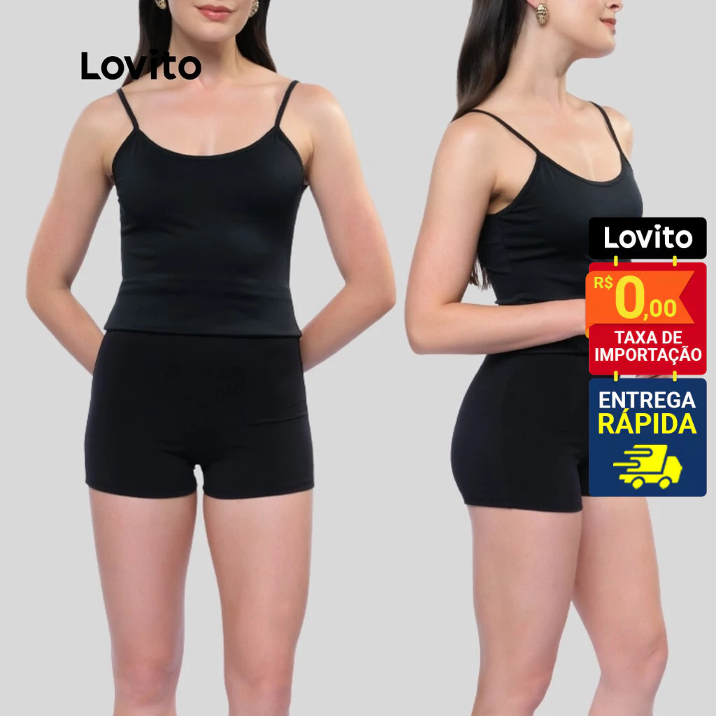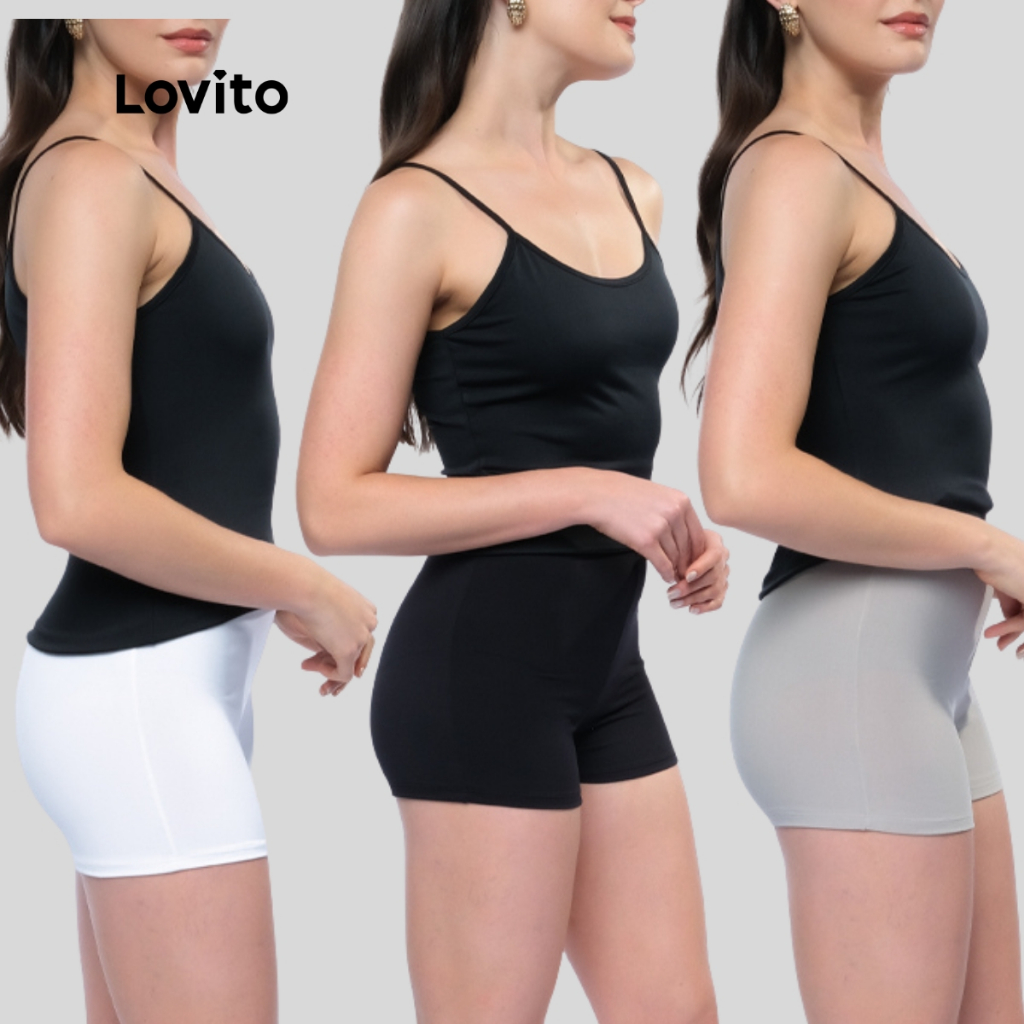 Lovito Kit 3 Shorts Feminino Segunda Pele Malha Liso LB1314BRL1344