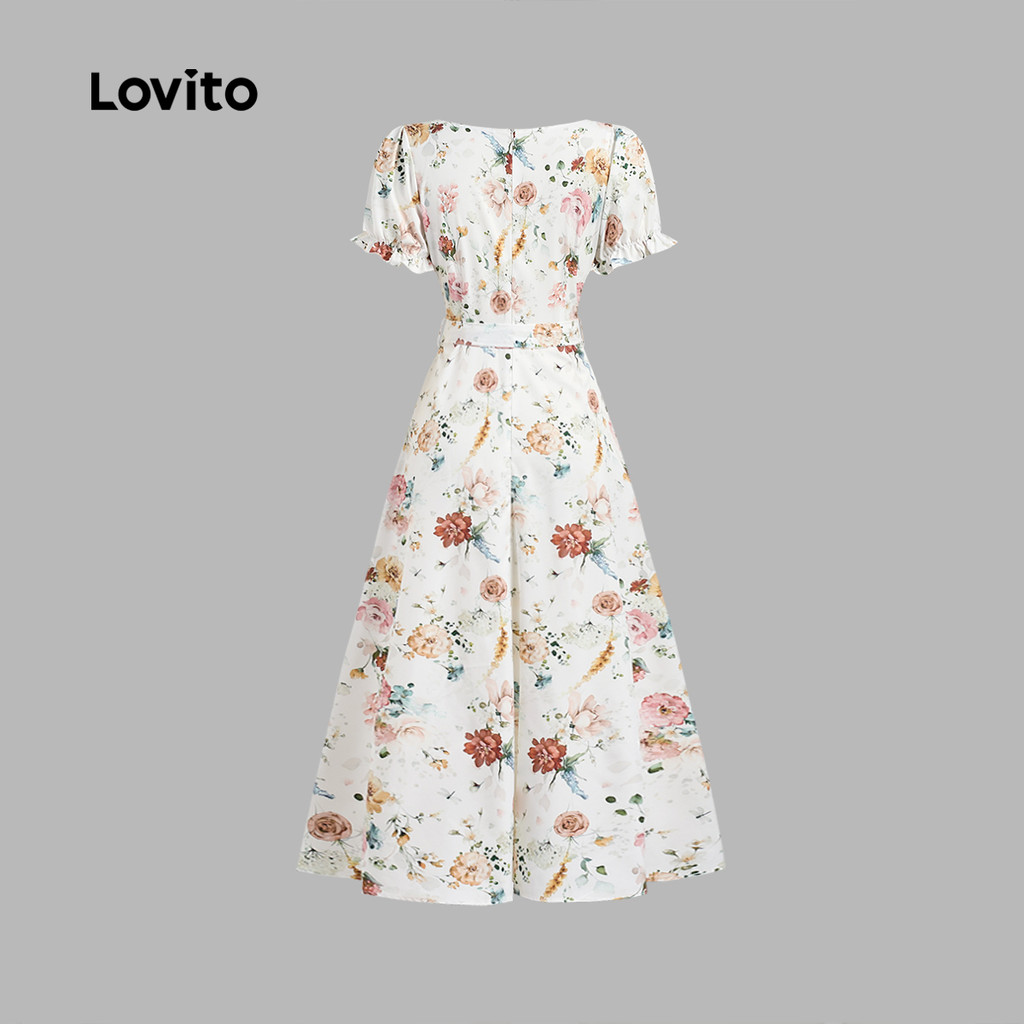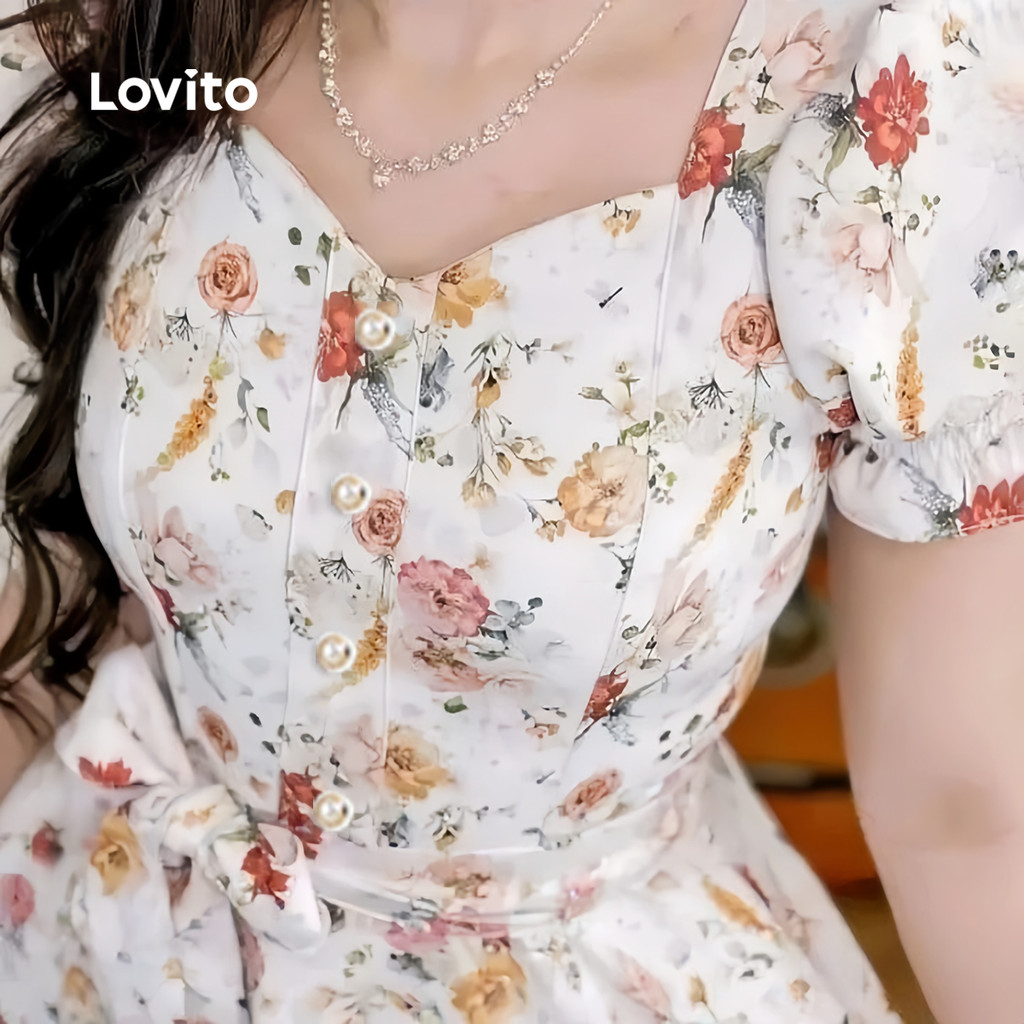 (NEW) Lovito Vestido Romântico de Renda com Botões Na Frente para Primavera/verão para mulheres L154ED1169