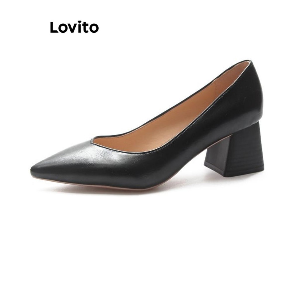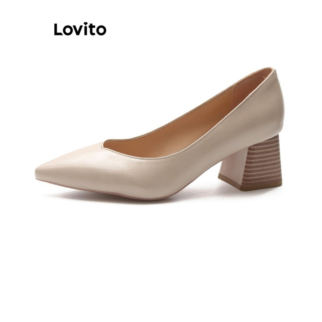Lovito Elegante Light Career Style Wood Granulado Suave Nu Cor Versátil Commute Heel para Mulheres LFA62106\2