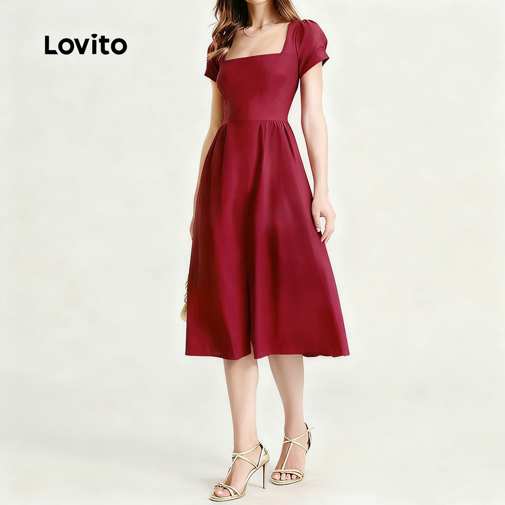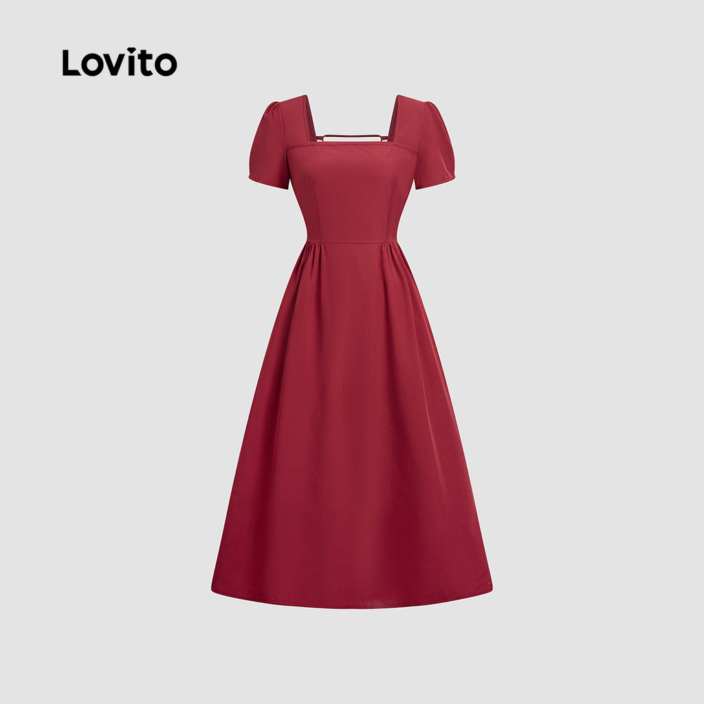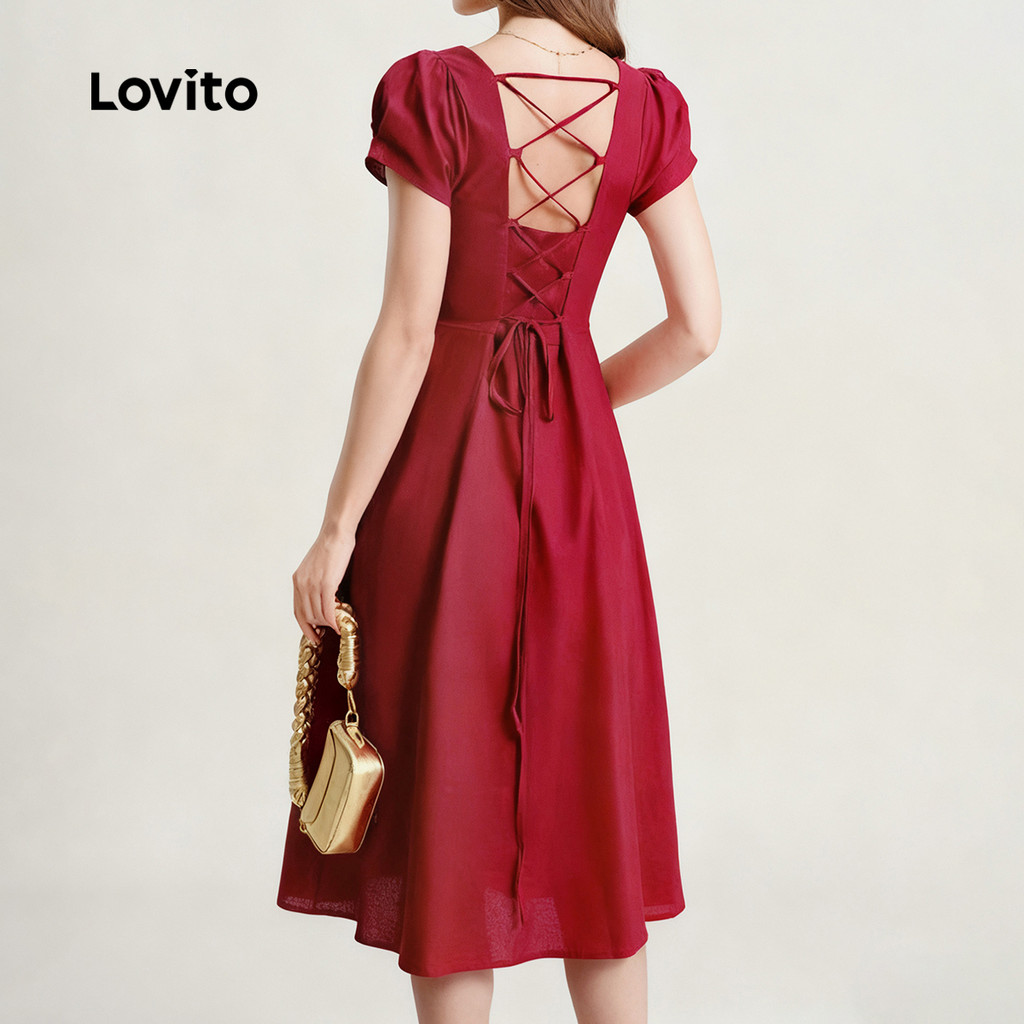 (NEW) Lovito Vestido Elegante com Laço Nas Costas para Primavera/verão Vestido Claret para Mulheres L155ED869