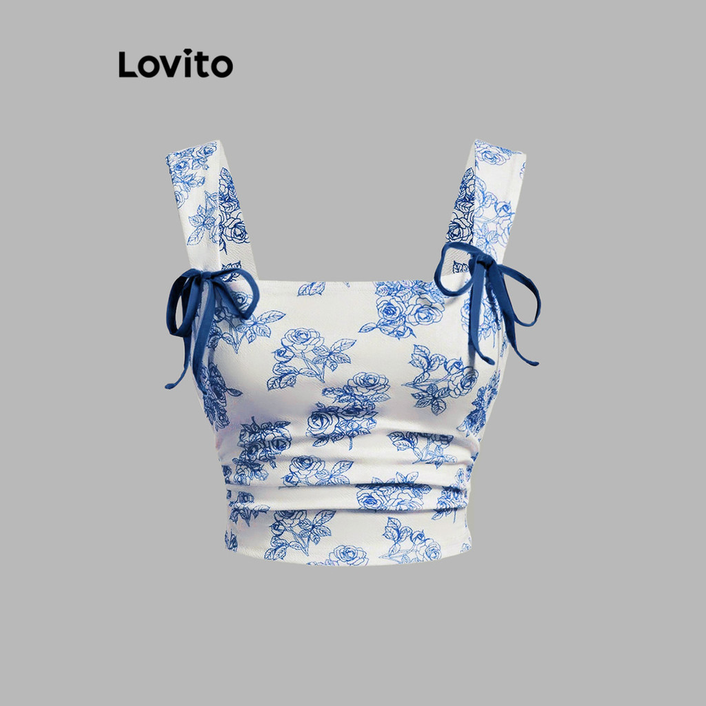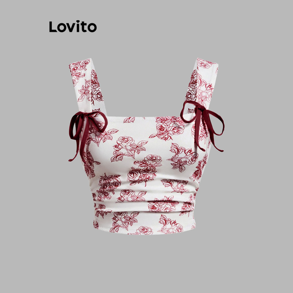 Lovito Regata Elegante Com Laço Floral Frontal Franzida Regata De Verão Para Mulheres L105MD049\5