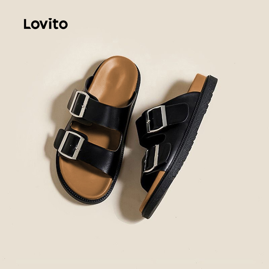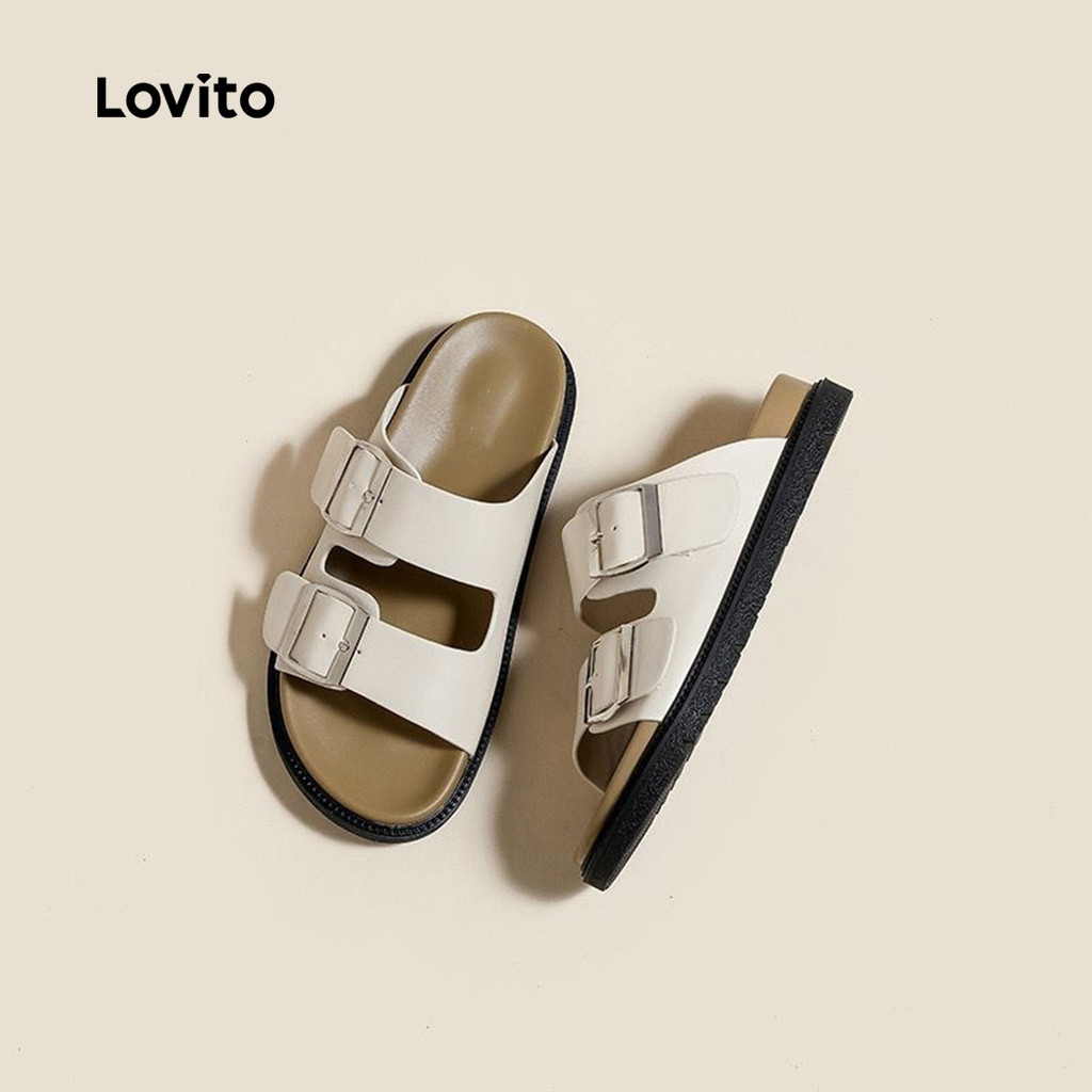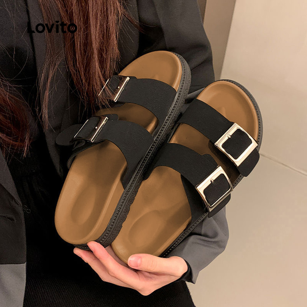 Lovito Chinelos Lisos Casuais Com Fivela De Metal Birkenstocks Lazy Feeling Sandálias Planas Para Mulheres LFA82140