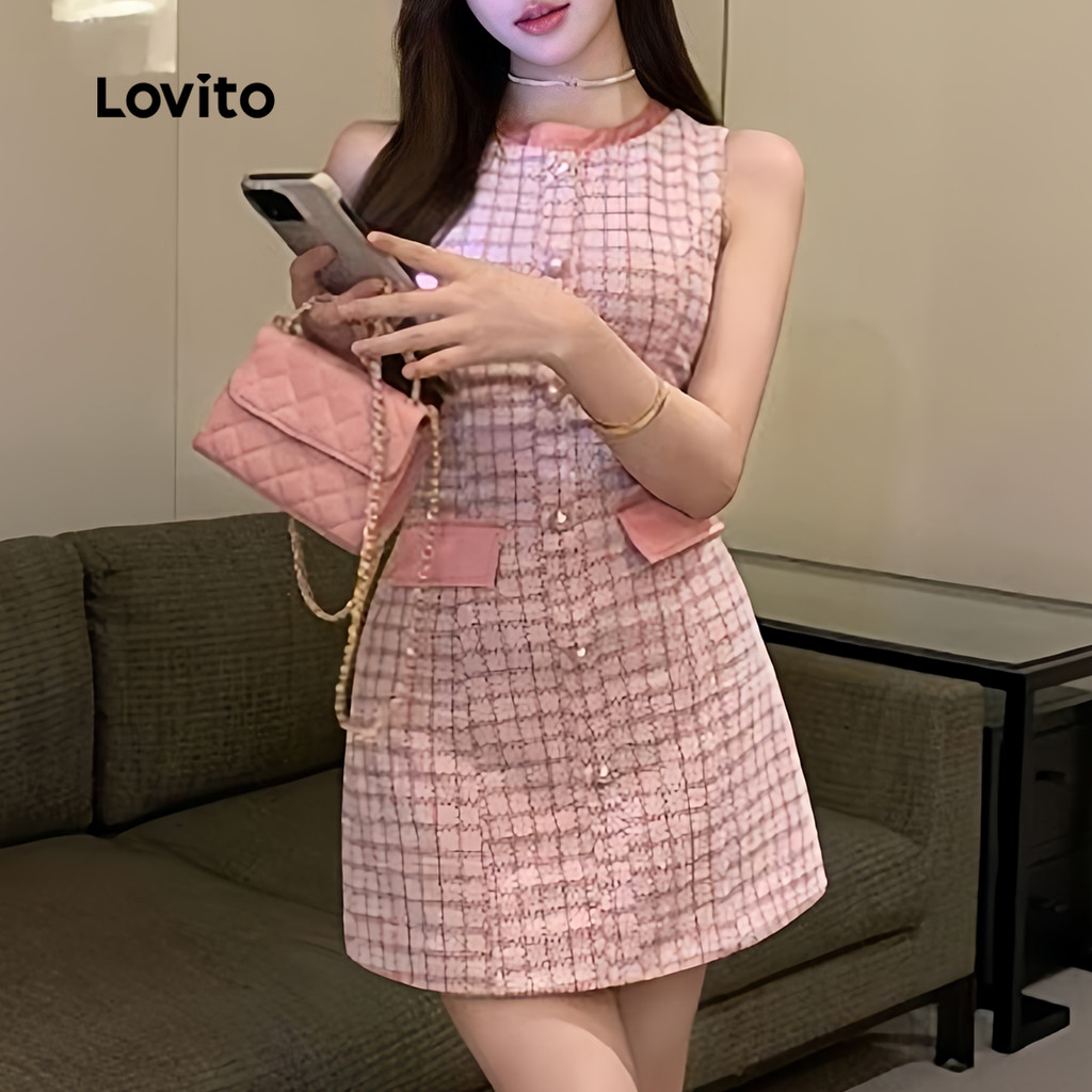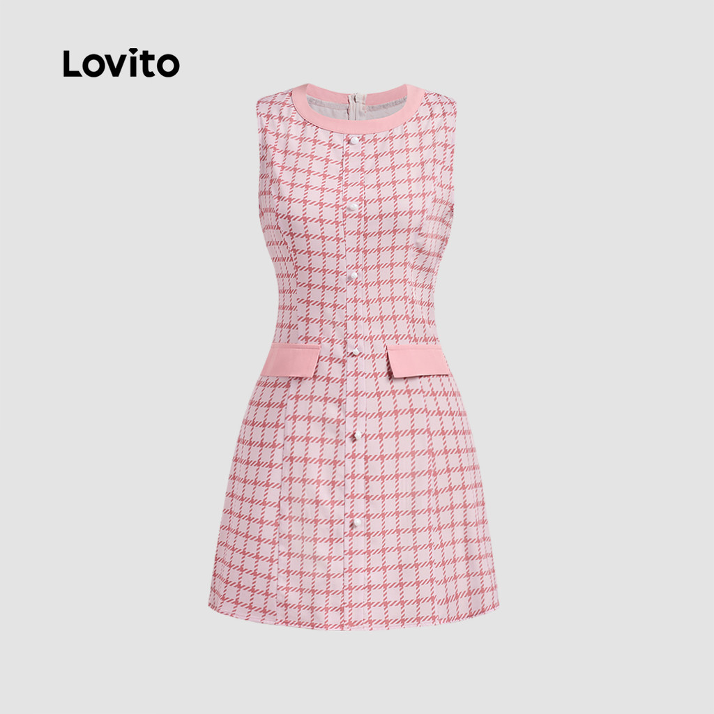 (New) Lovito Vestido Elegante Colorido com Bolso Falso Primavera/verão Rosa para mulheres L142ED231