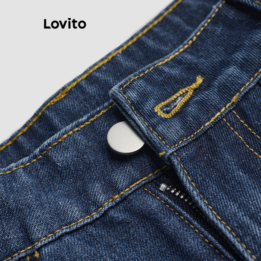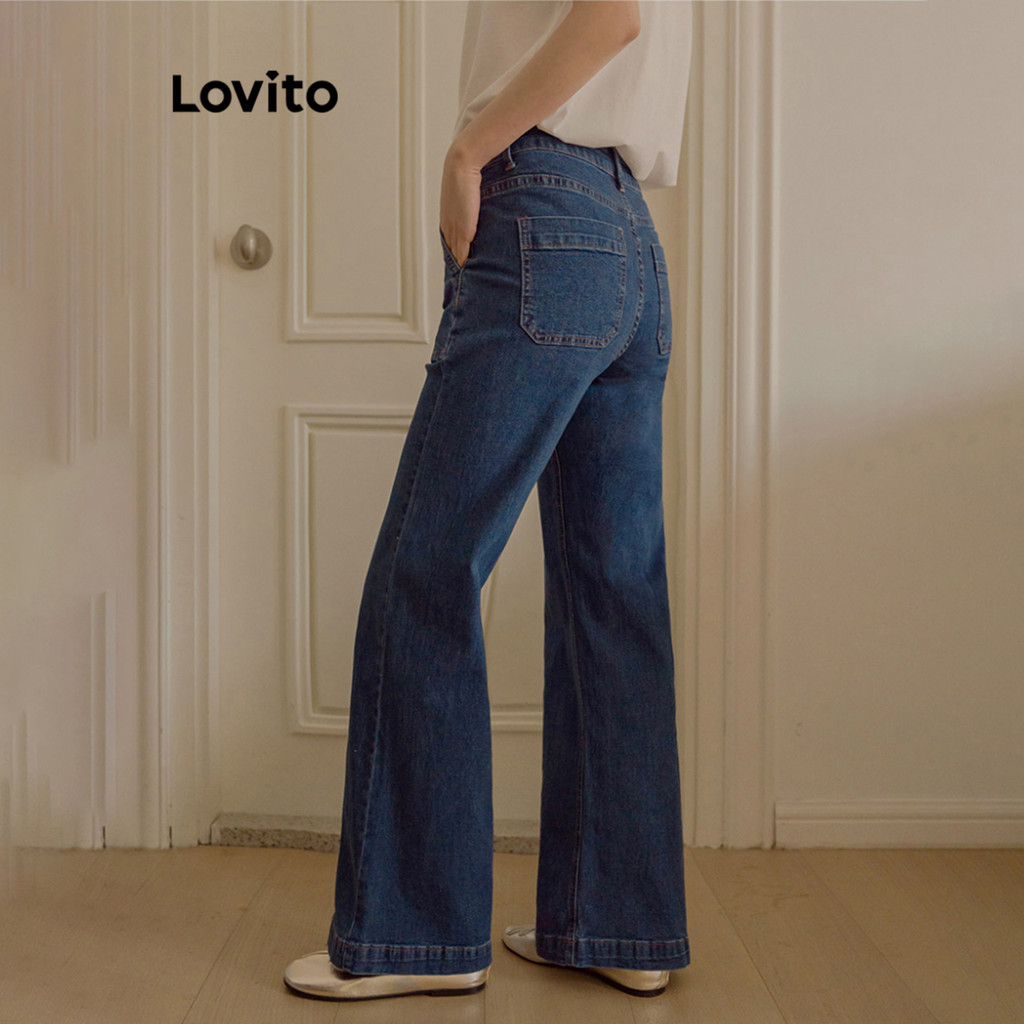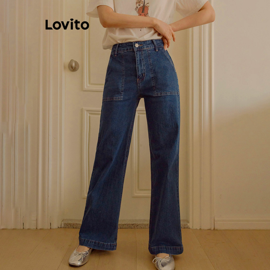 Lovito Jeans Feminino Casual com Bolsos, Botão e Corte Moderno para Todas as Estações - L117AD092