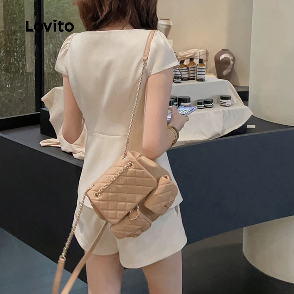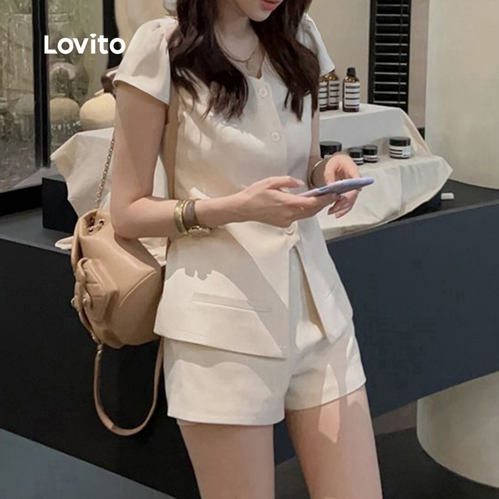 (Trendy2) Lovito Tops Ou Calças Casuais Com Botão Frontal Dividido Verão/Primavera Para Mulheres LNM79464