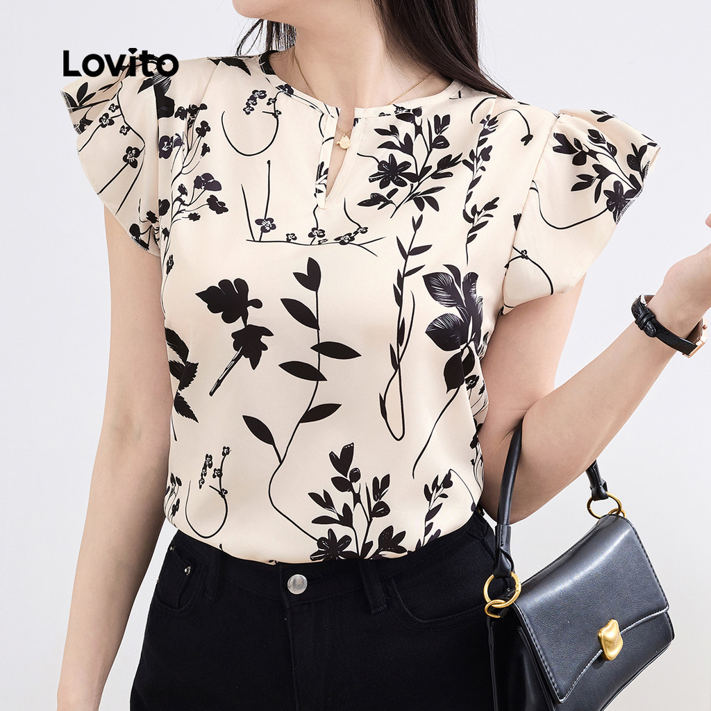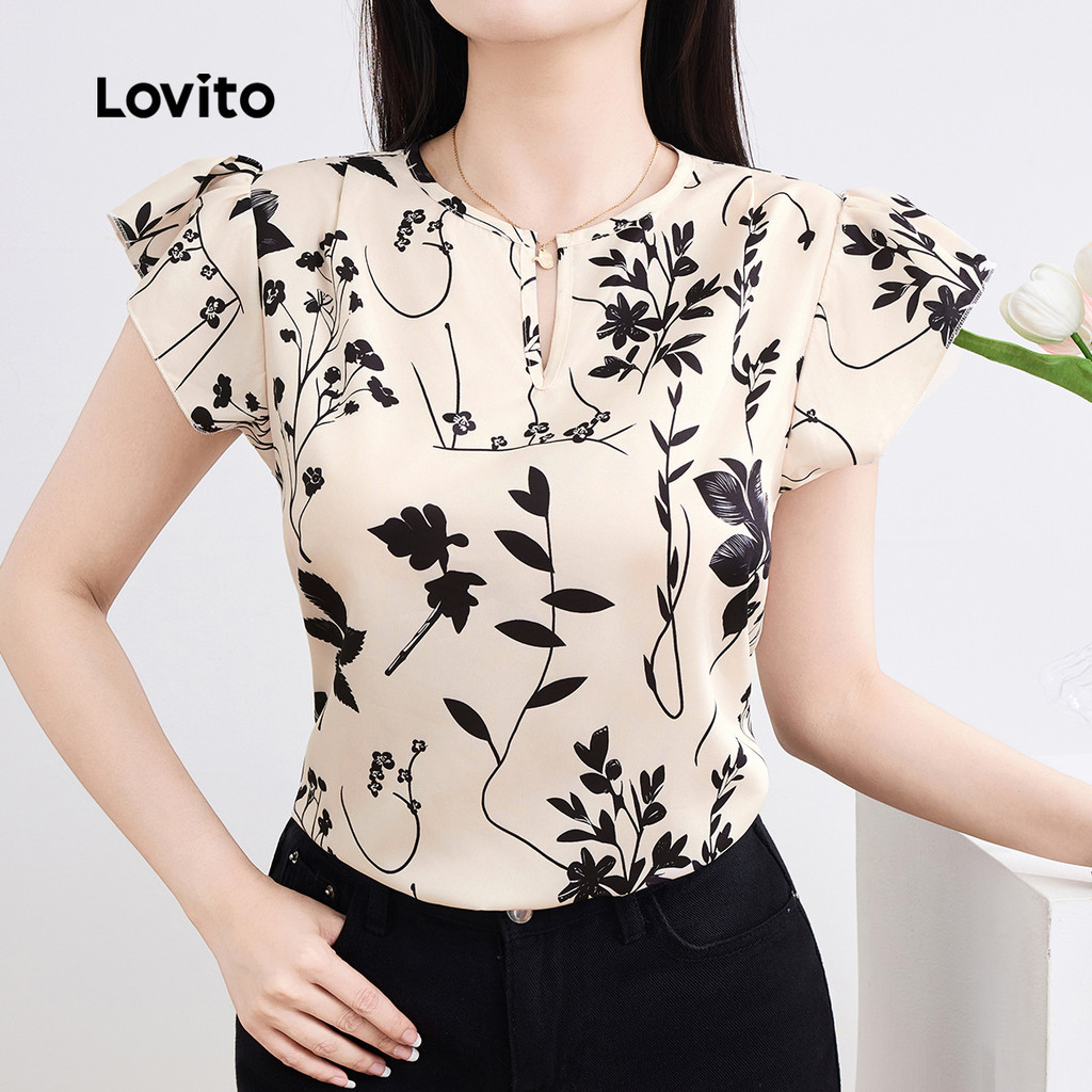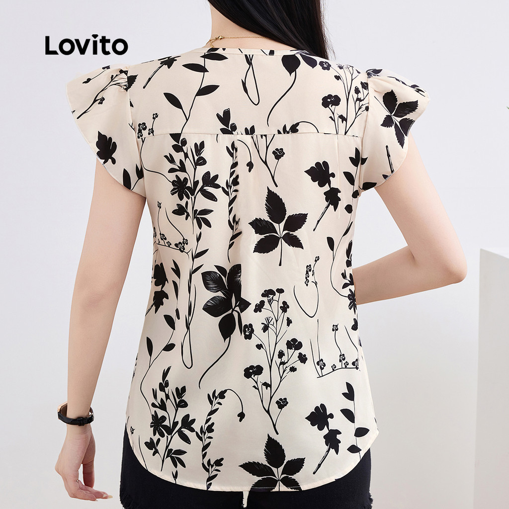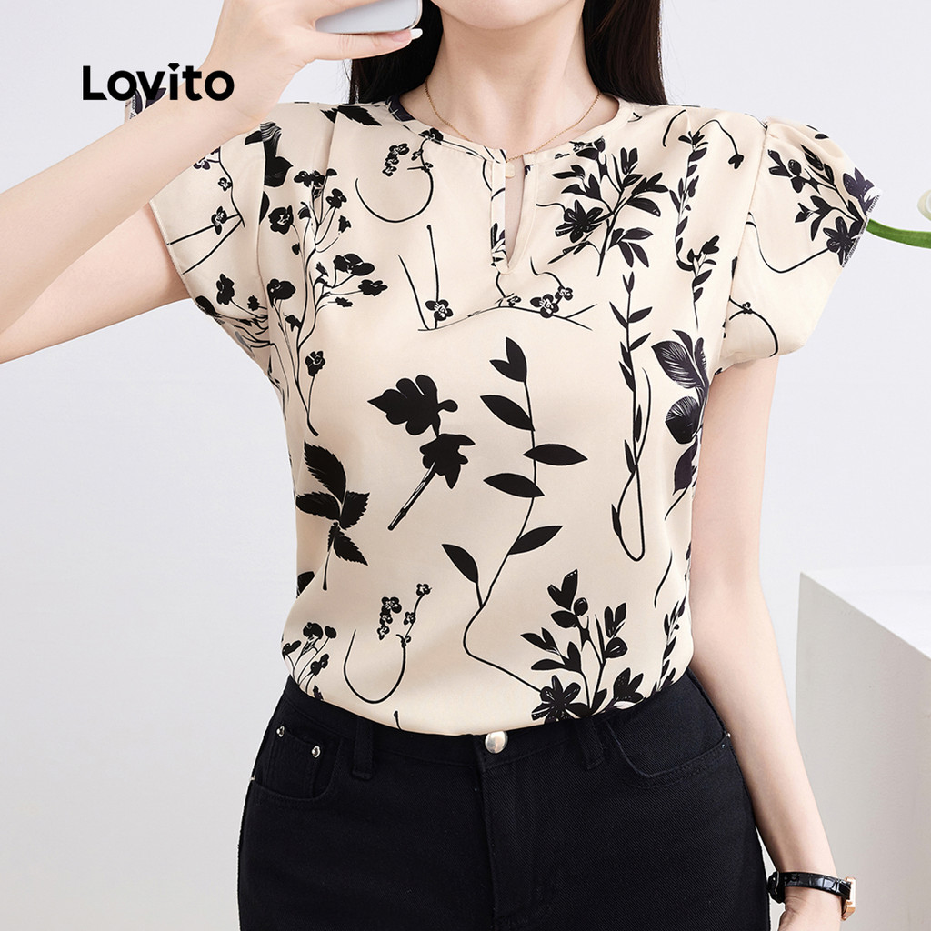 Lovito Blusa Casual Floral Floral Plissada Colorblock Verão Primavera Multicolorida Para Mulheres L135ED309