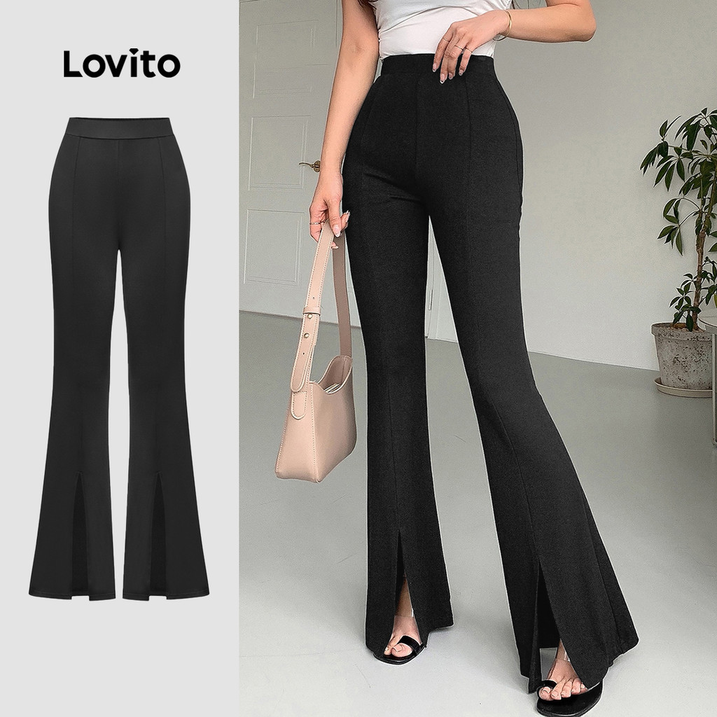 (Hot) Lovito Calça Elegante Calça Frontal Dividida Lisa Para Mulheres L95ED030
