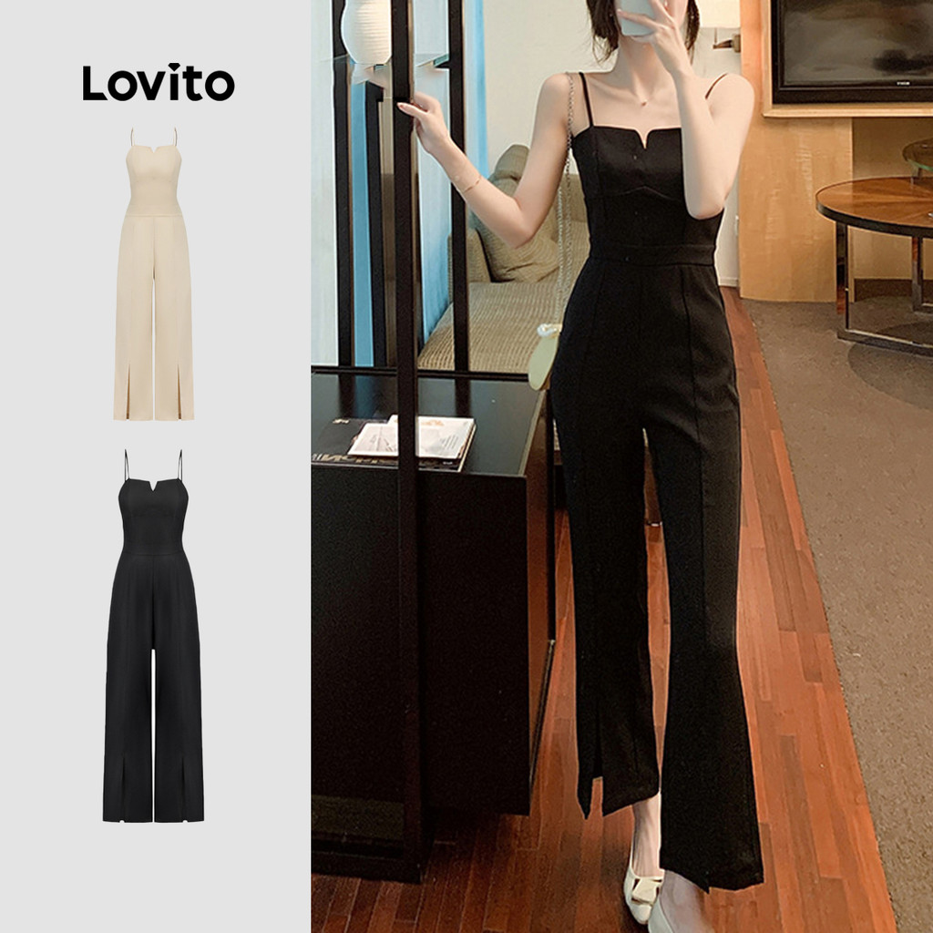 (Hot) Lovito Macacão Elegante Com Divisão Lisa Para Mulheres L80ED349 (Multicolorido)