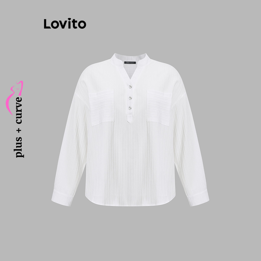 (Trendy) Lovito Blusa Curva Plus Size Casual Blusa Jacquard Com Botão Liso Para Mulheres LBL16672