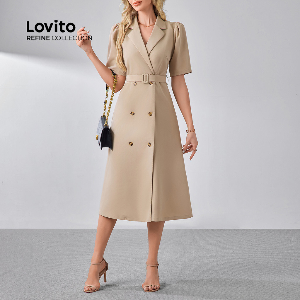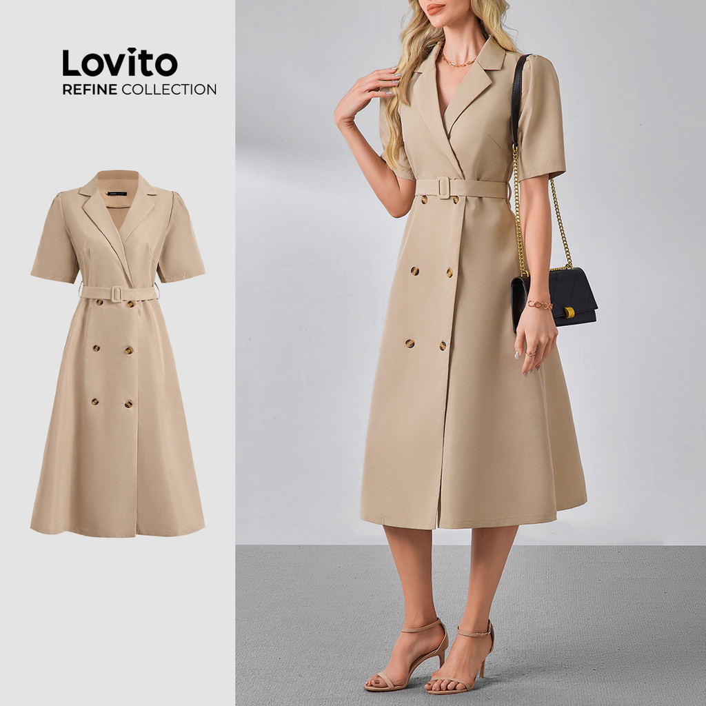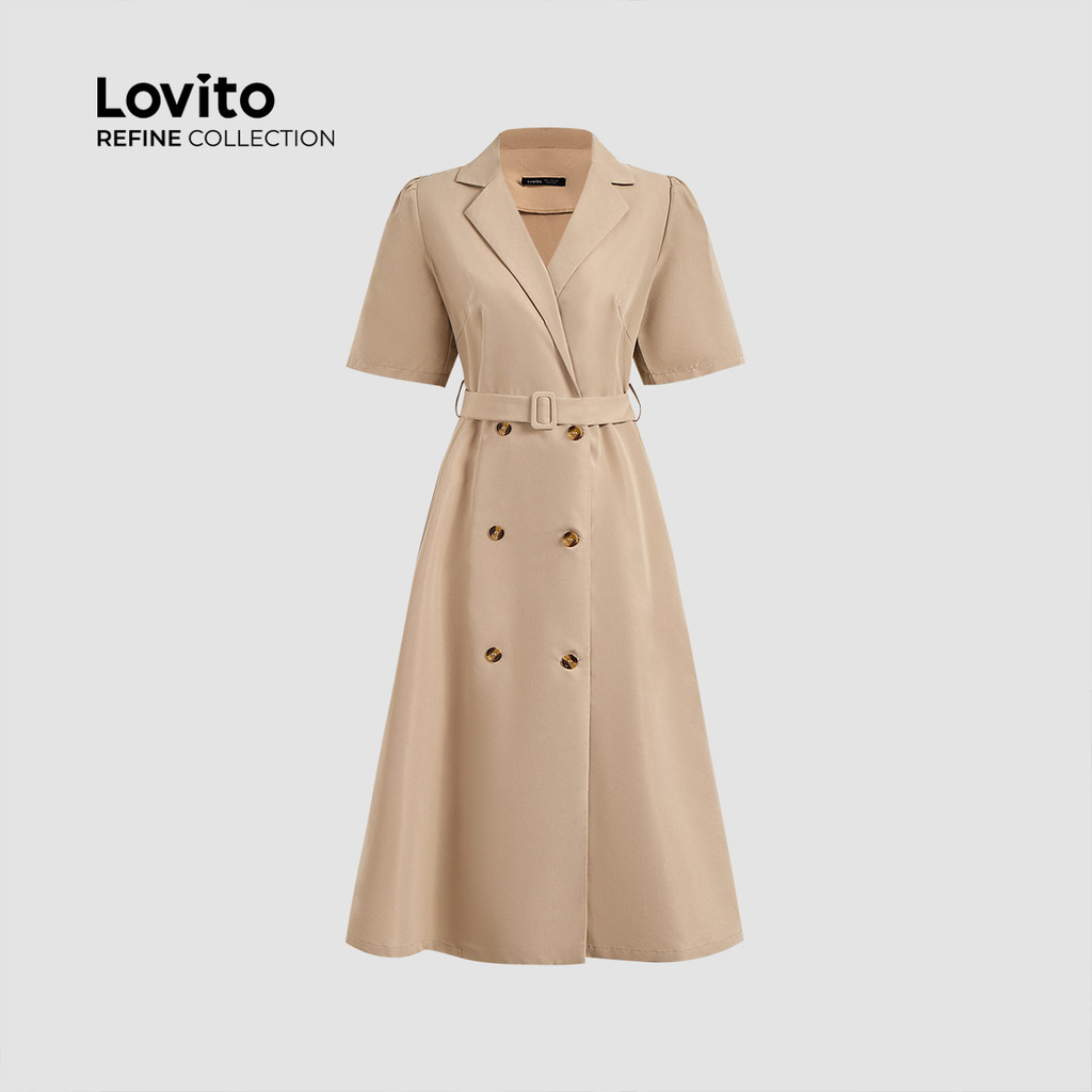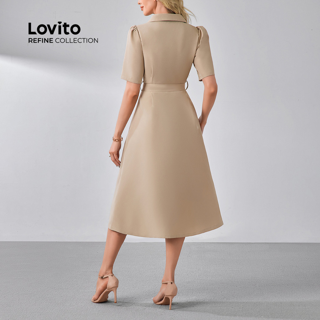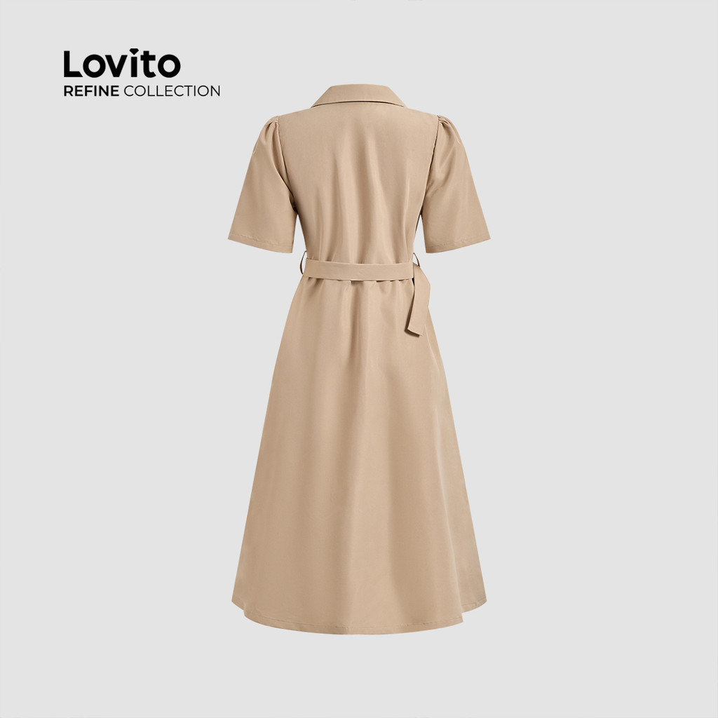 (Lovito Refine) Vestido Elegante de Botão com Cinto para Primavera/verão em Cáqui para mulheres LR13L096