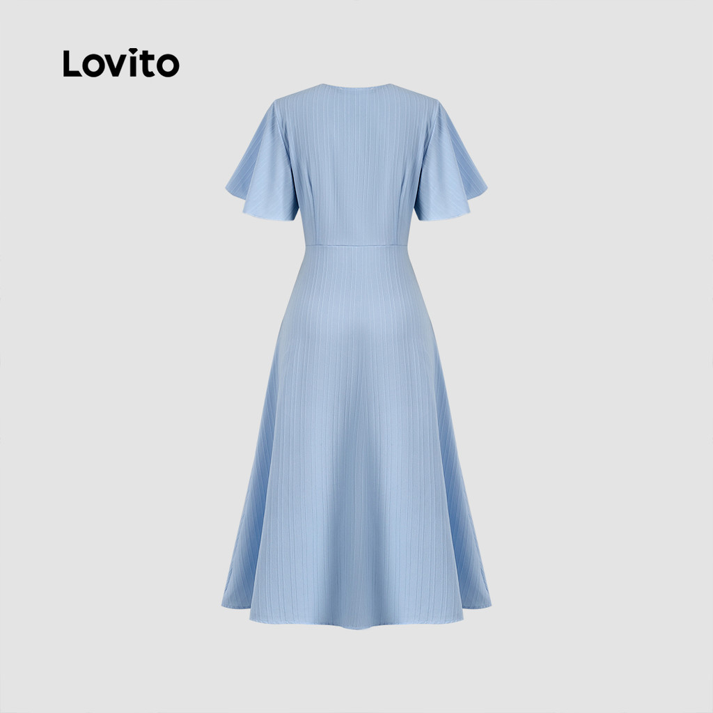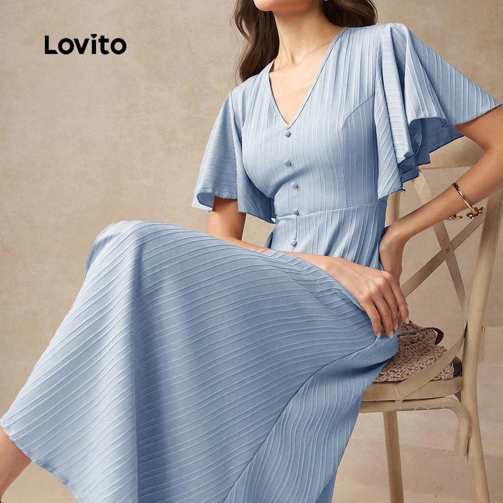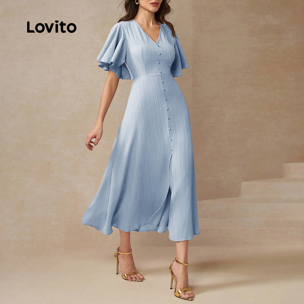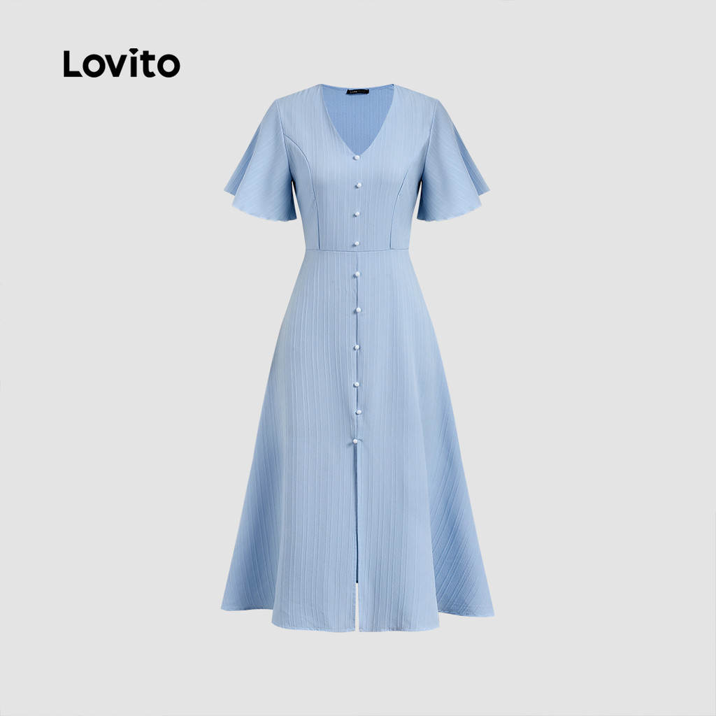 (New Lovito) Vestido Casual de Botão Primavera/verão para Mulheres L143ED119