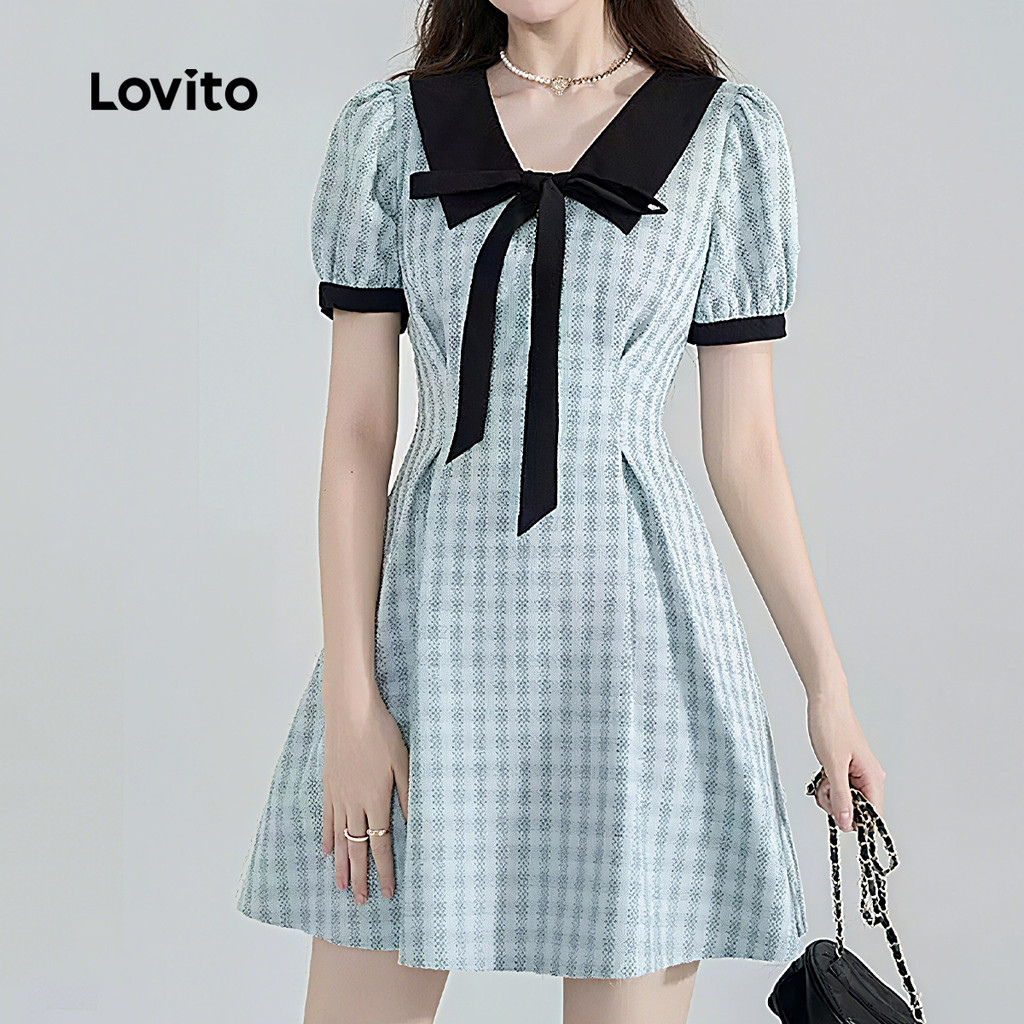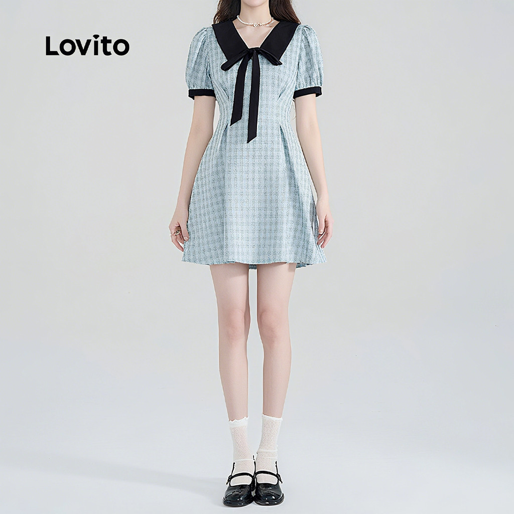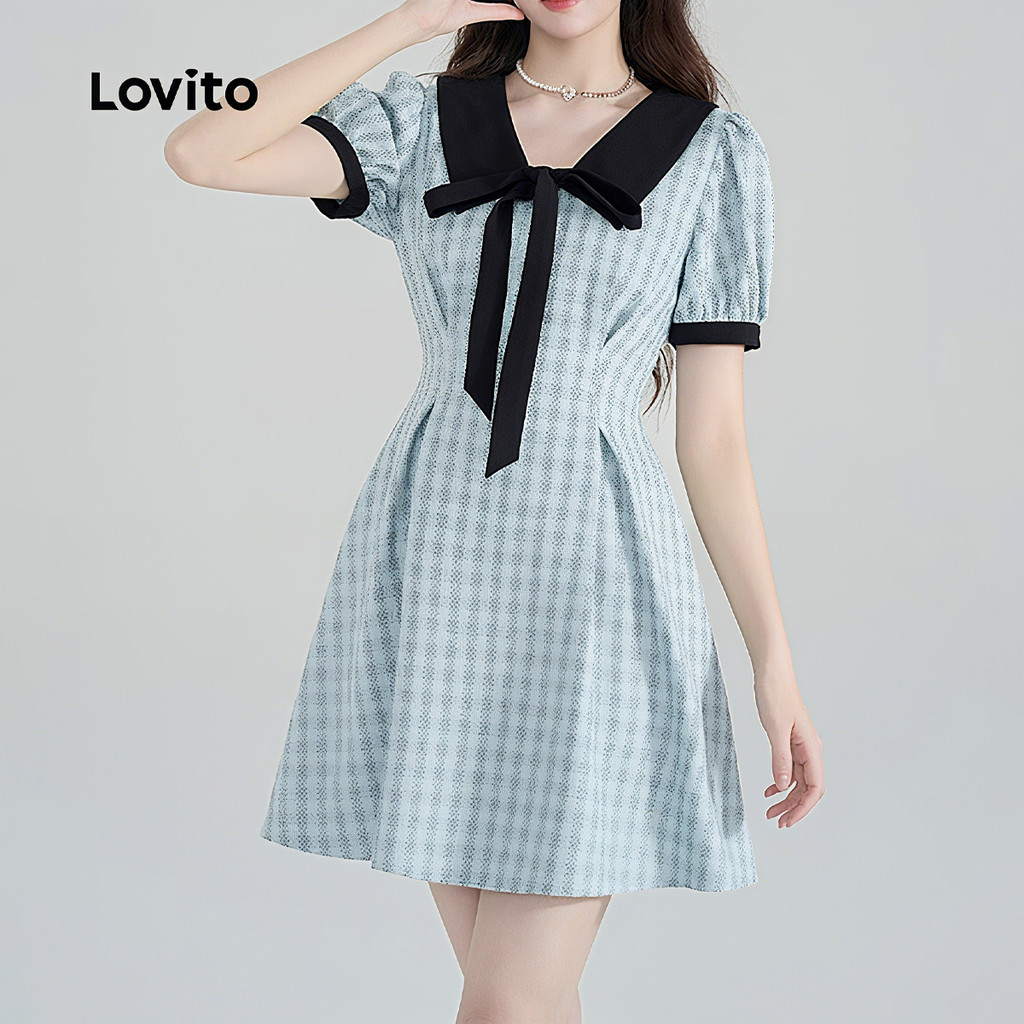 (New) Lovito Vestido Casual com Laço de Primavera/verão Azul para Mulheres L151AD042