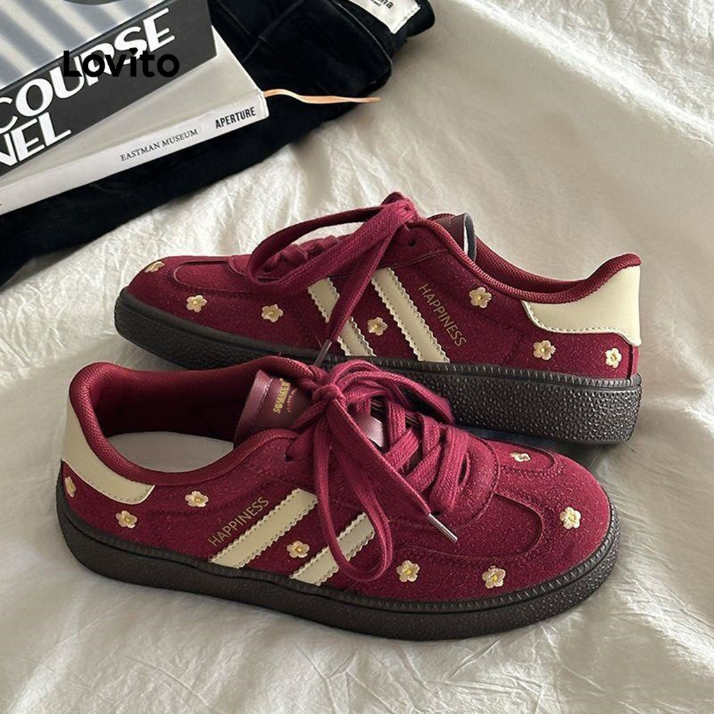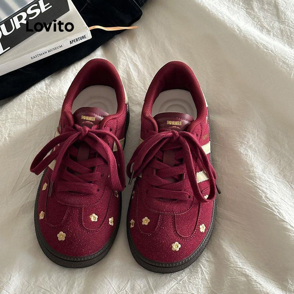 (Trendy) Lovito Tênis esportivo liso Colorblock flores versátil sola grossa fundo macio leve para mulheres LFA76377