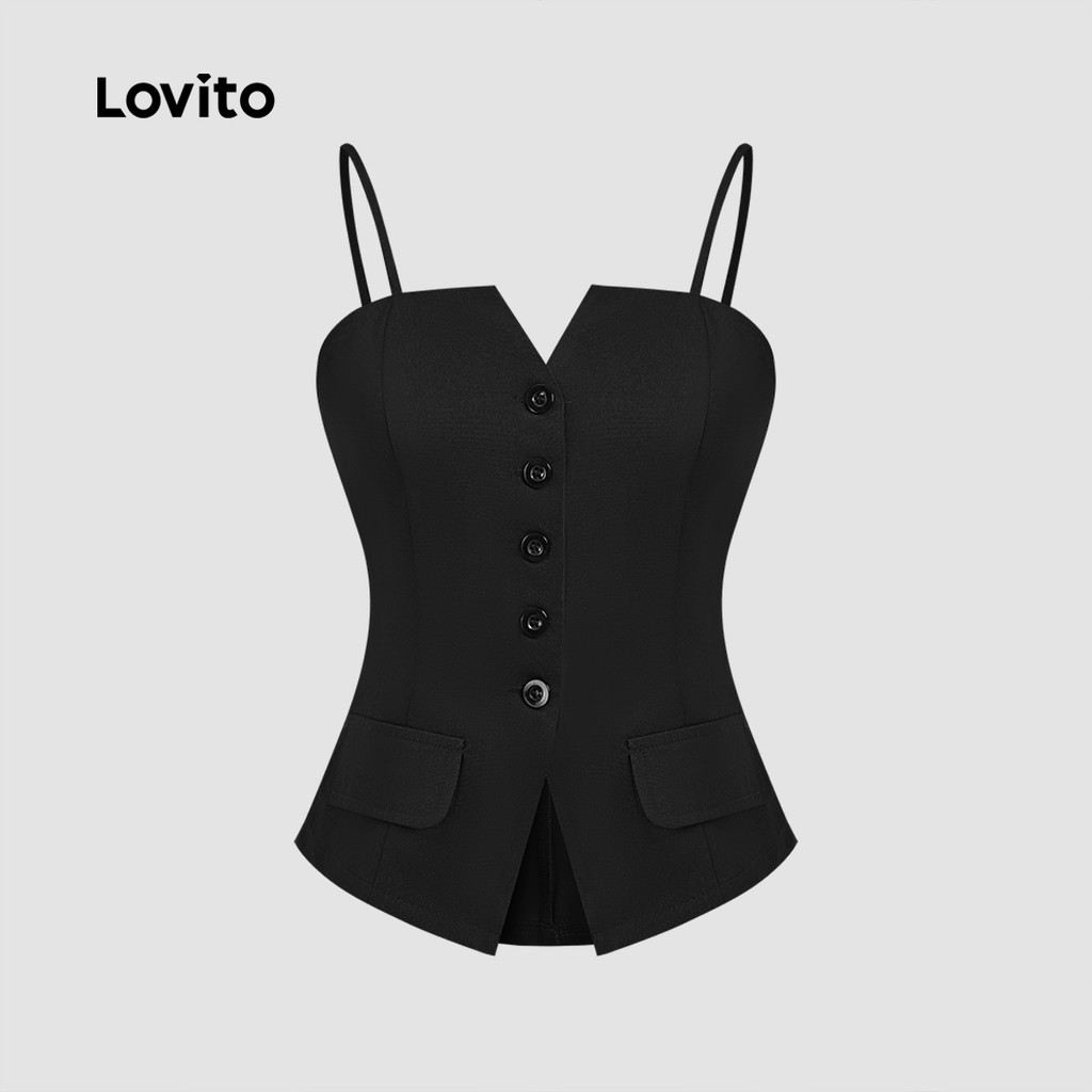 Lovito Regata Feminina Elegante de Botão Liso L131LD1270