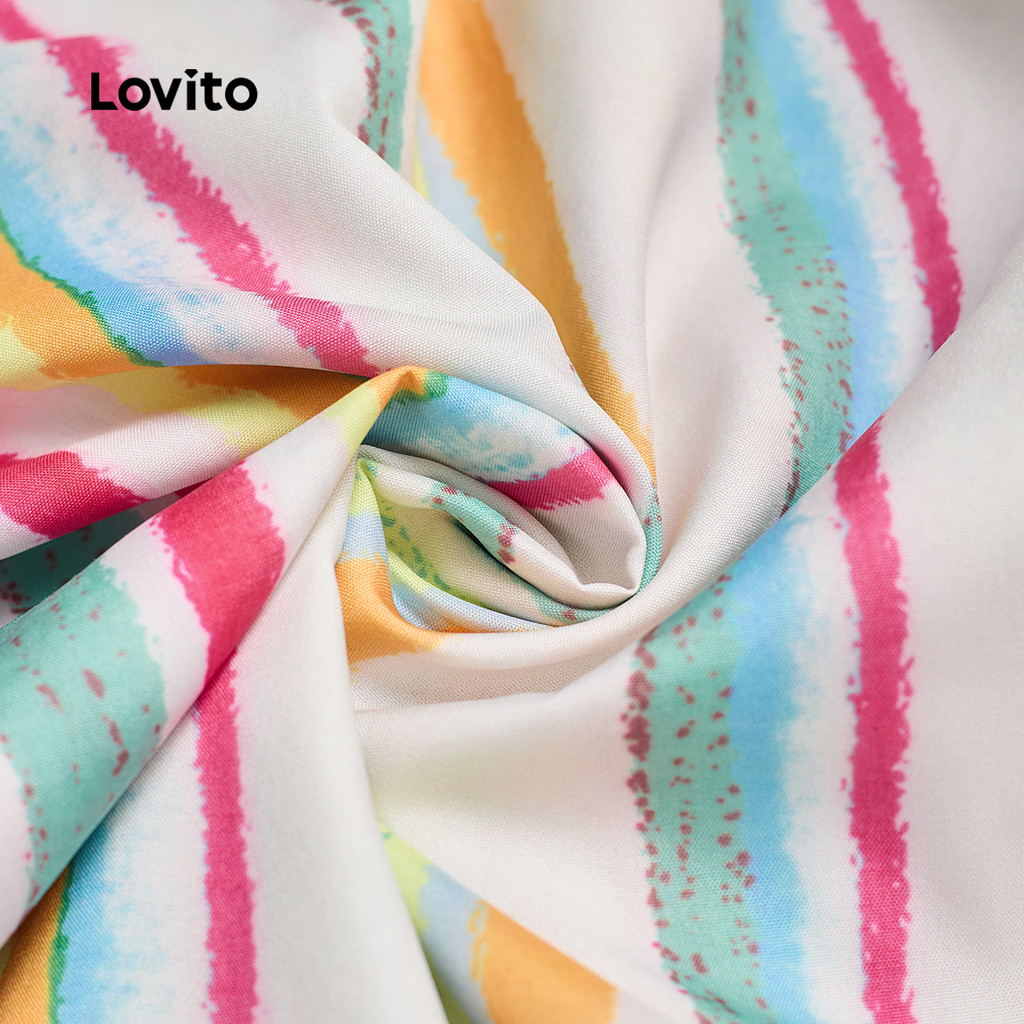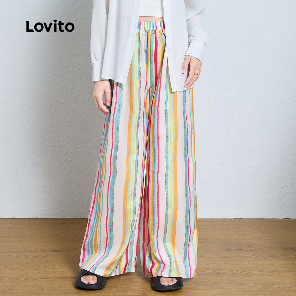 Lovito Calça Boho Com Listras Arco-íris Colorblock Verão/primavera Para Mulheres L133AD151