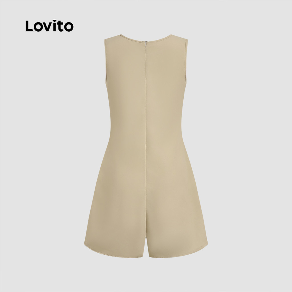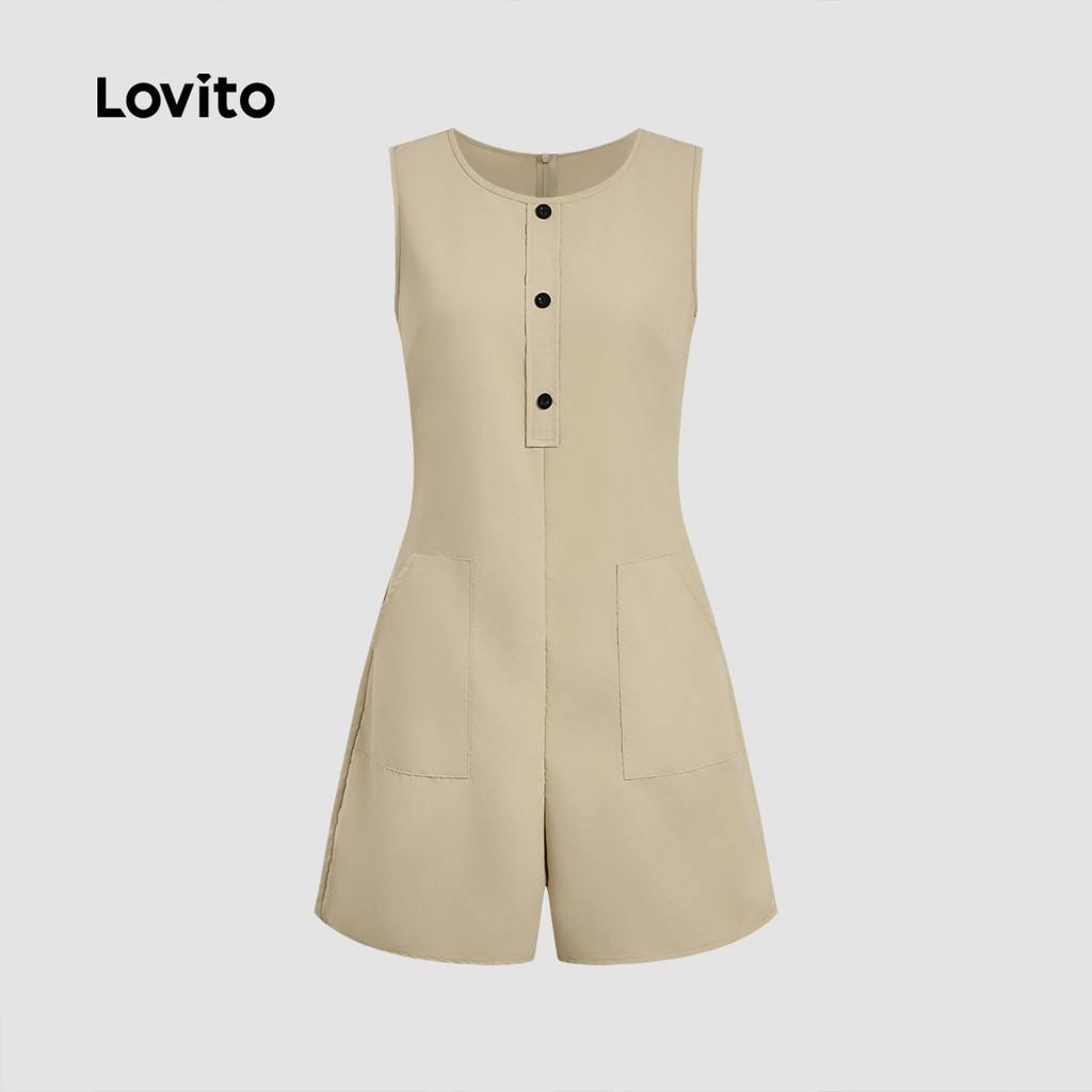 Lovito Macacão Casual com Botões e Bolsos Primavera/verão Caqui para Mulheres L137ED067