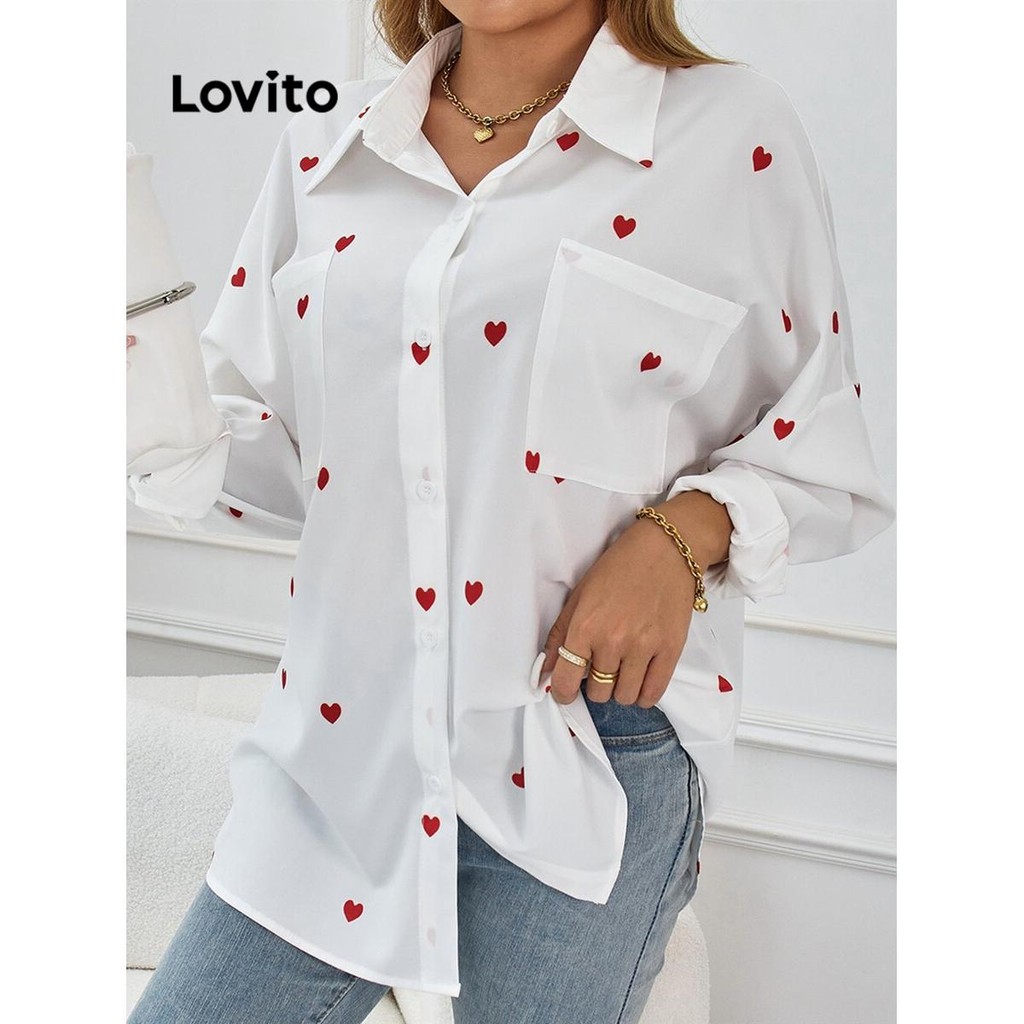 Blusa Feminina Lovito Casual com Estampa de Coração LNL72073