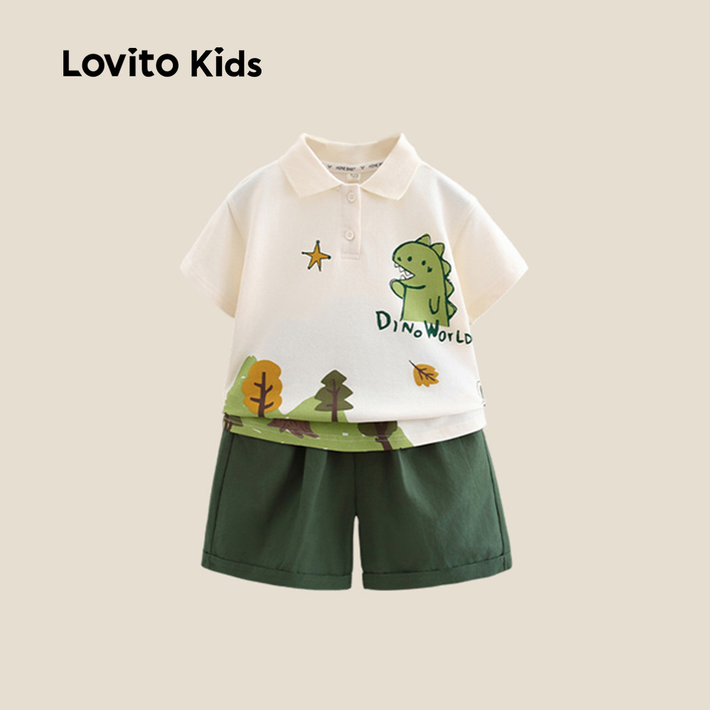 Lovito Kids Conjuntos de Shorts Fofos com Botões para Primavera/verão Conjuntos de Shorts verdes L160LD197