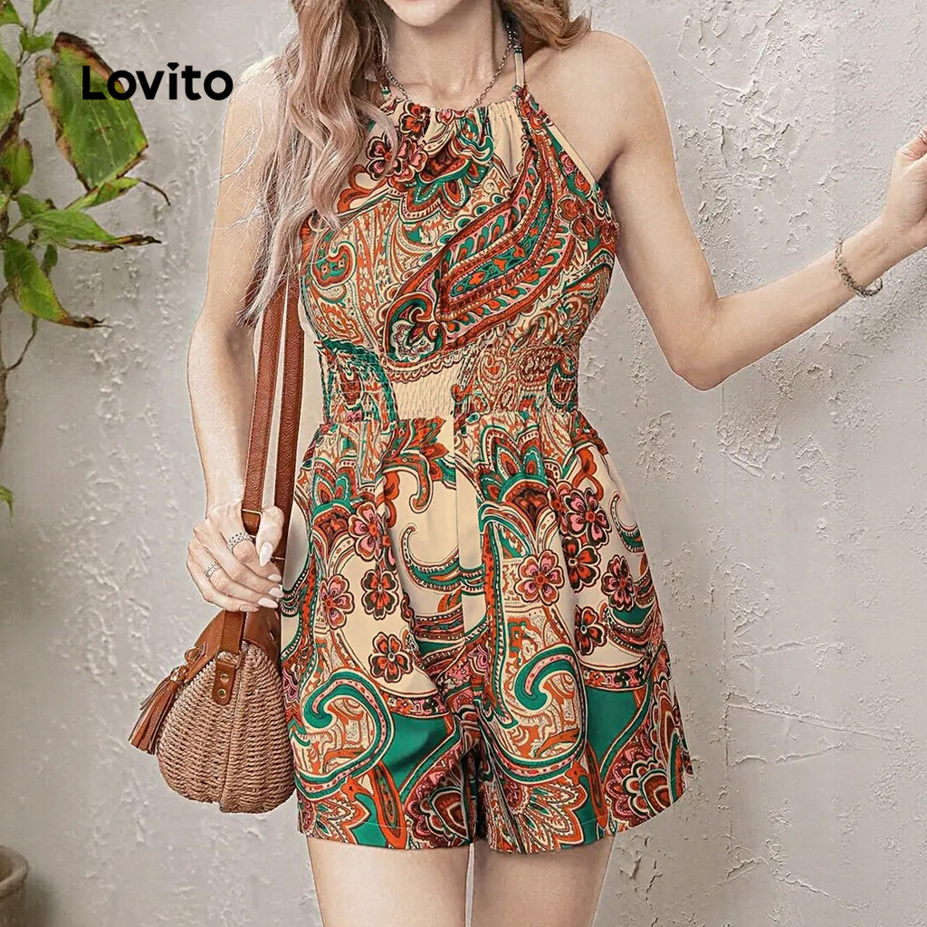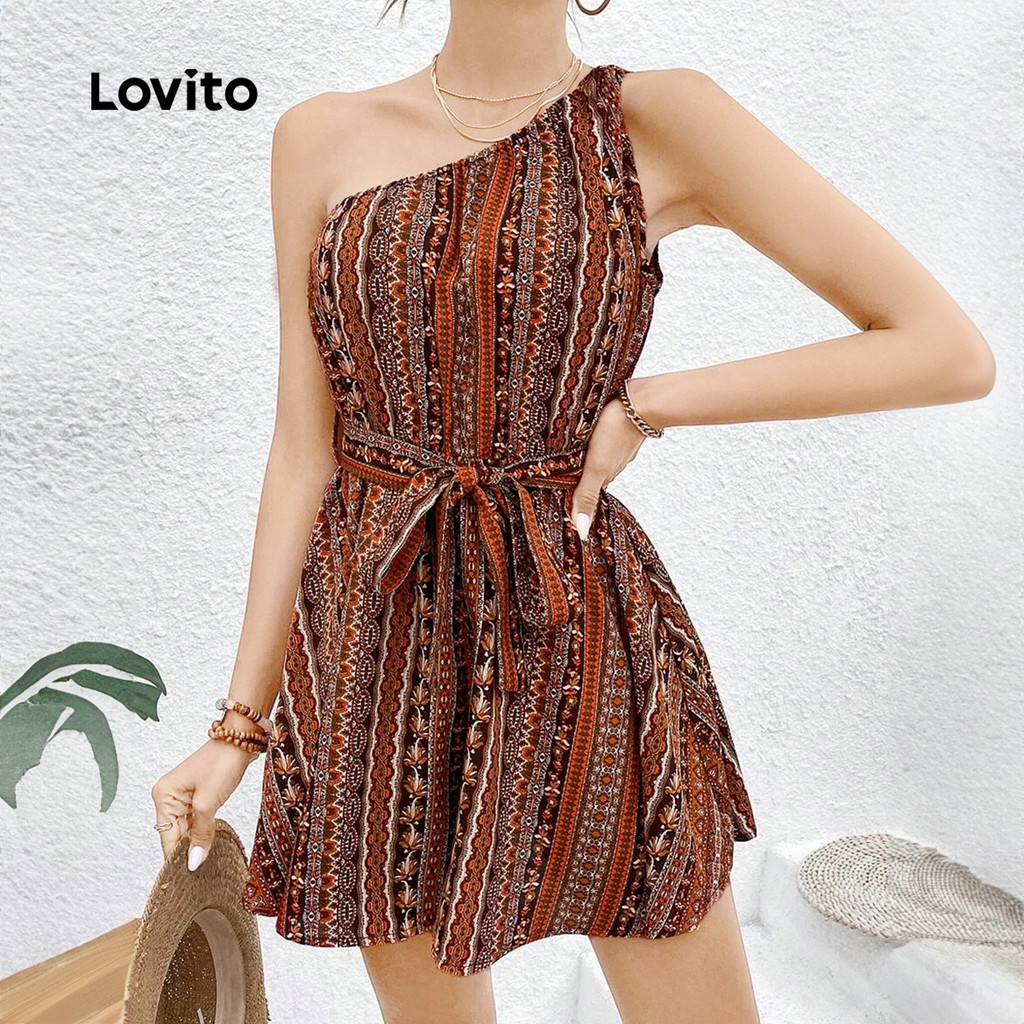 Lovito Macacão Boho com Cinto Assimétrico para Primavera/verão para Mulheres L138ED567