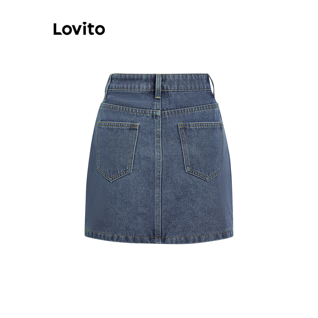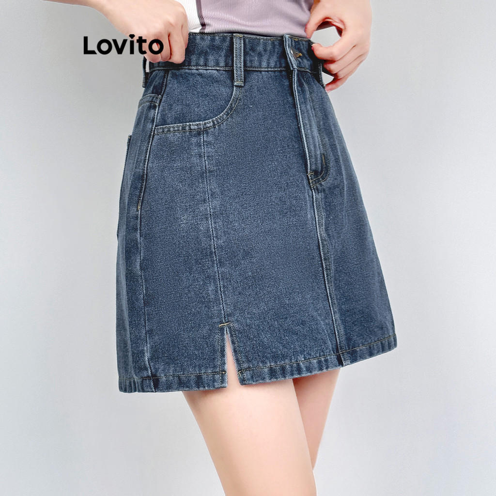 Lovito Saia Jeans Feminina Casual Lavada Lisa - L100MD522