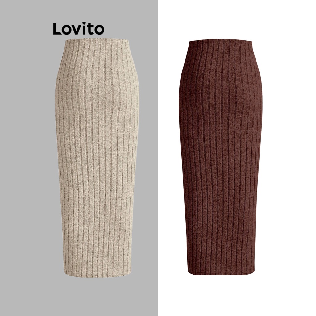 Lovito Saias Femininas em Tecido Texturizado Liso para Ocasiões Casuais L73AD118