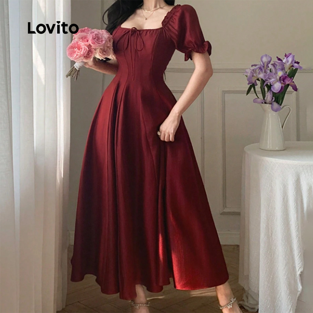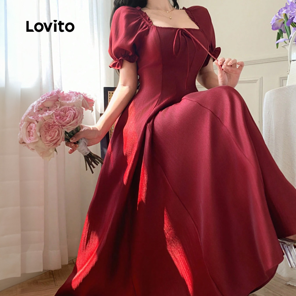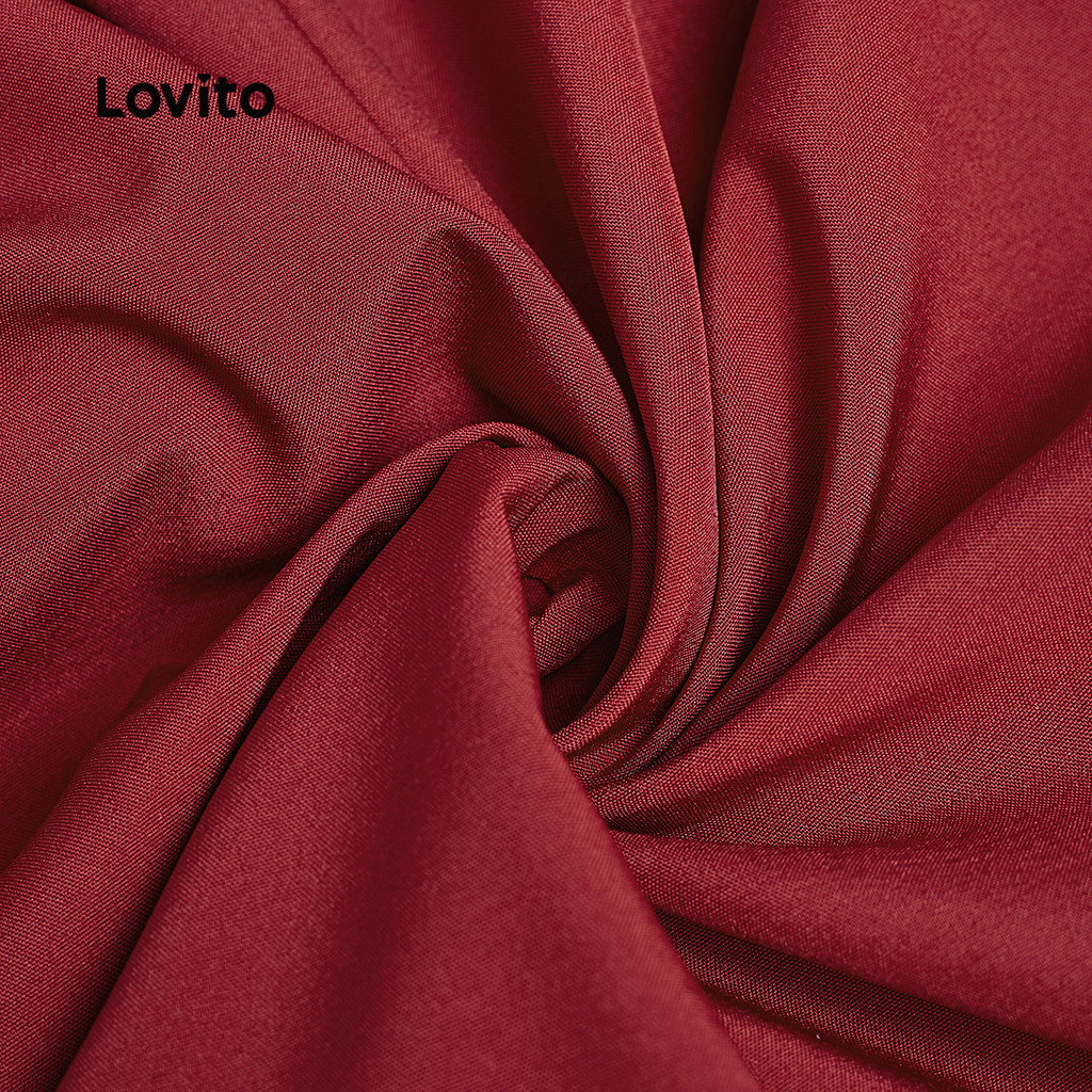 (NEW) Lovito Vestido Preppy de Renda com Zíper e Fecho de Coroação Primavera/verão Vermelho para Mulheres L154ED1013