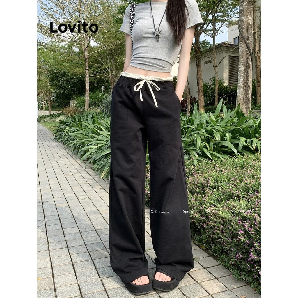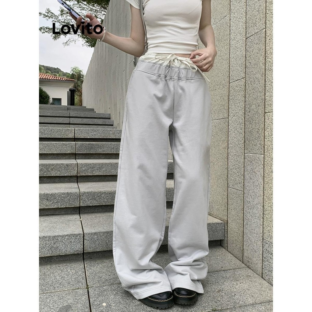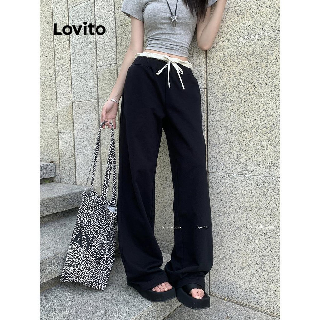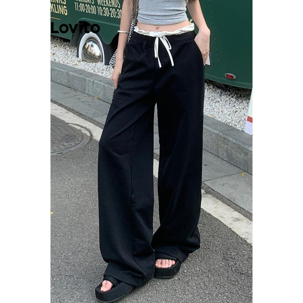 Lovito Calça Lisa Calça Colorblock Para Mulheres LNA70674\3