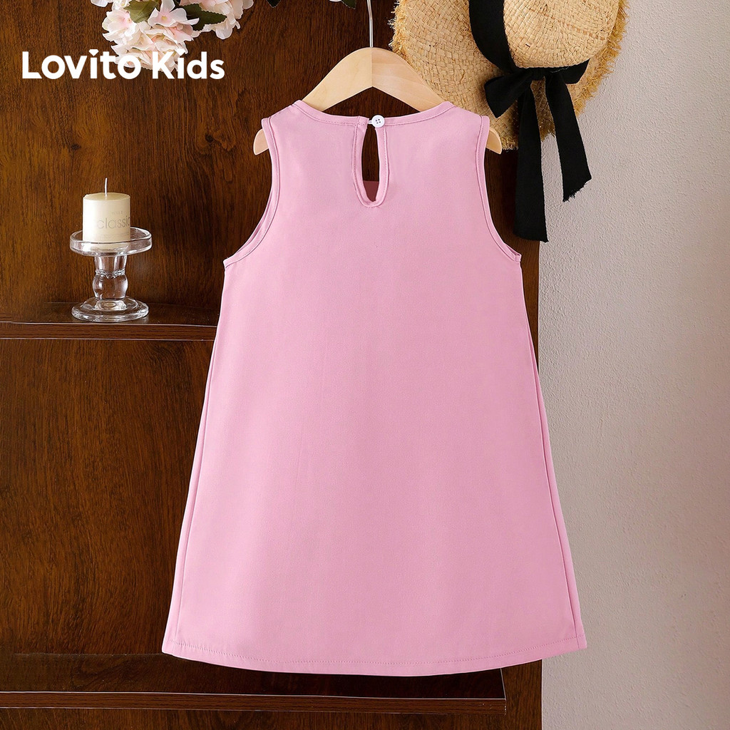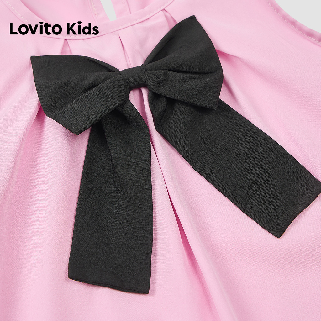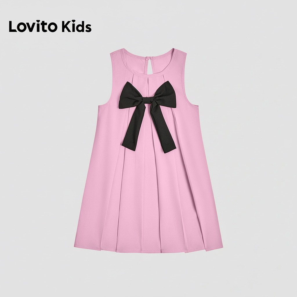 Lovito Kids Vestido Fofo com Laço Plissado Primavera/verão Rosa para menina L160LD210