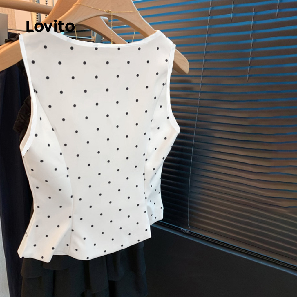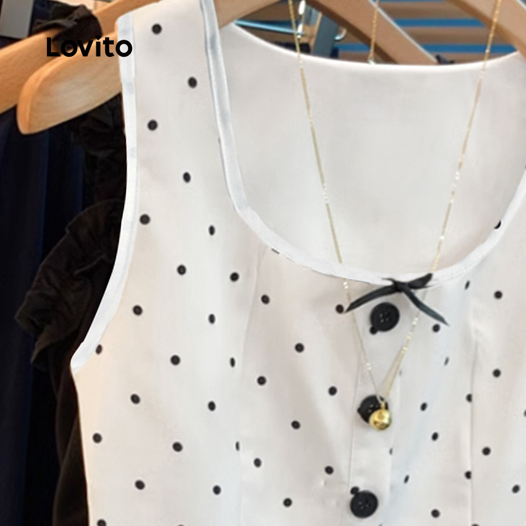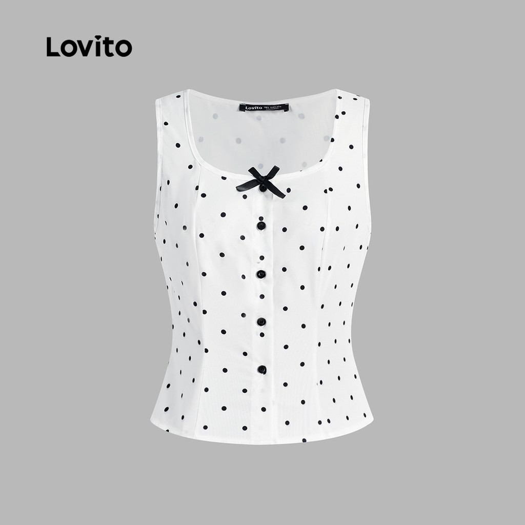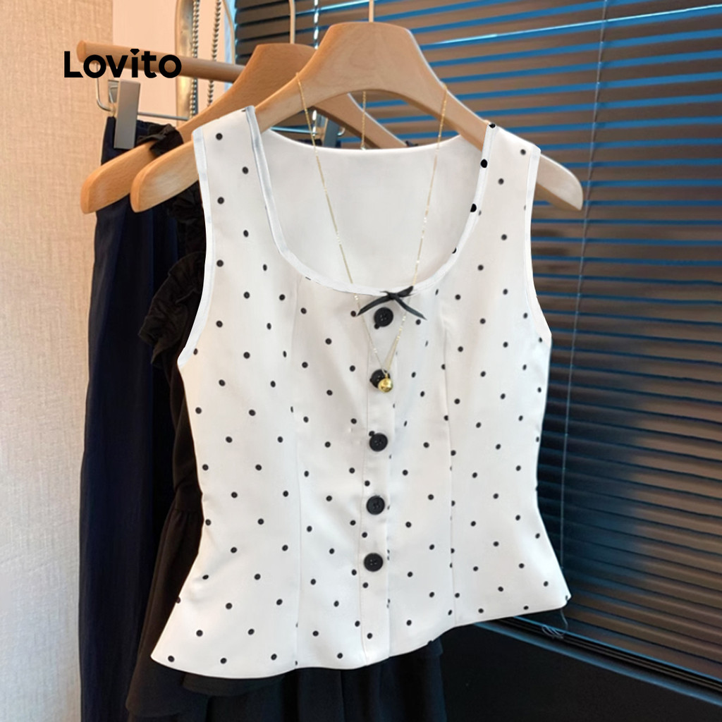 Lovito Top Casual Feminino Com Estampa Lisa E Botões Regata De Verão/primavera L131ED799