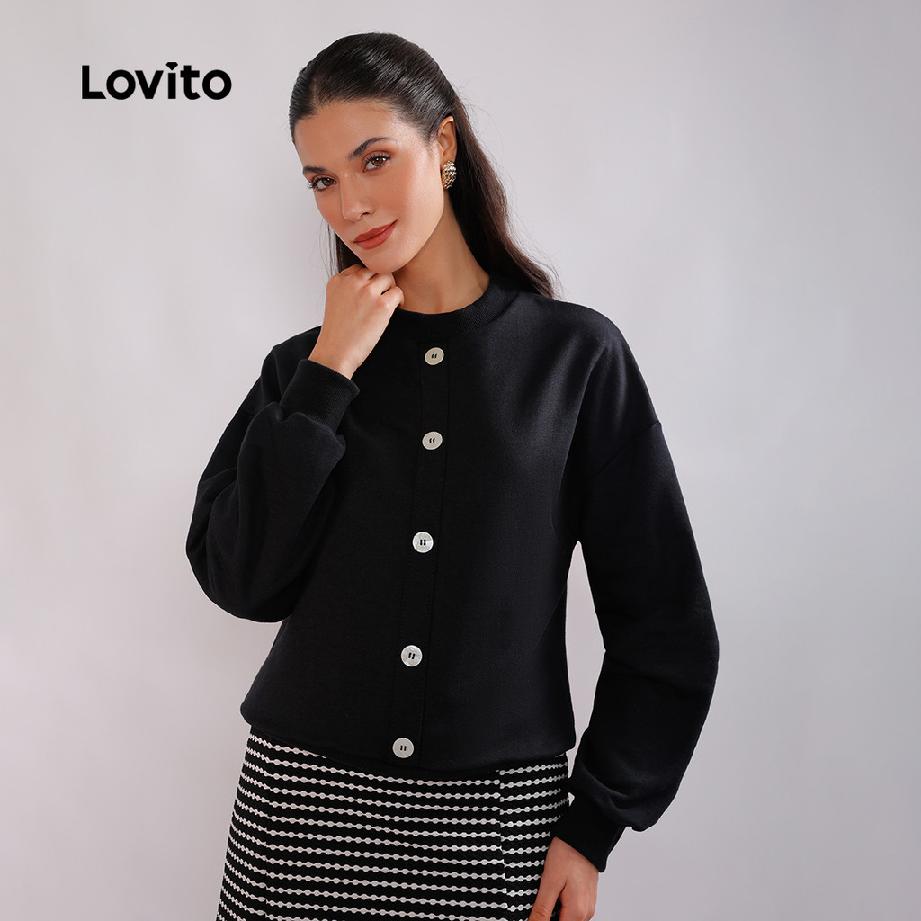 Lovito Moletom Manga Longa Casual com Botões Feminino LB443BRL472