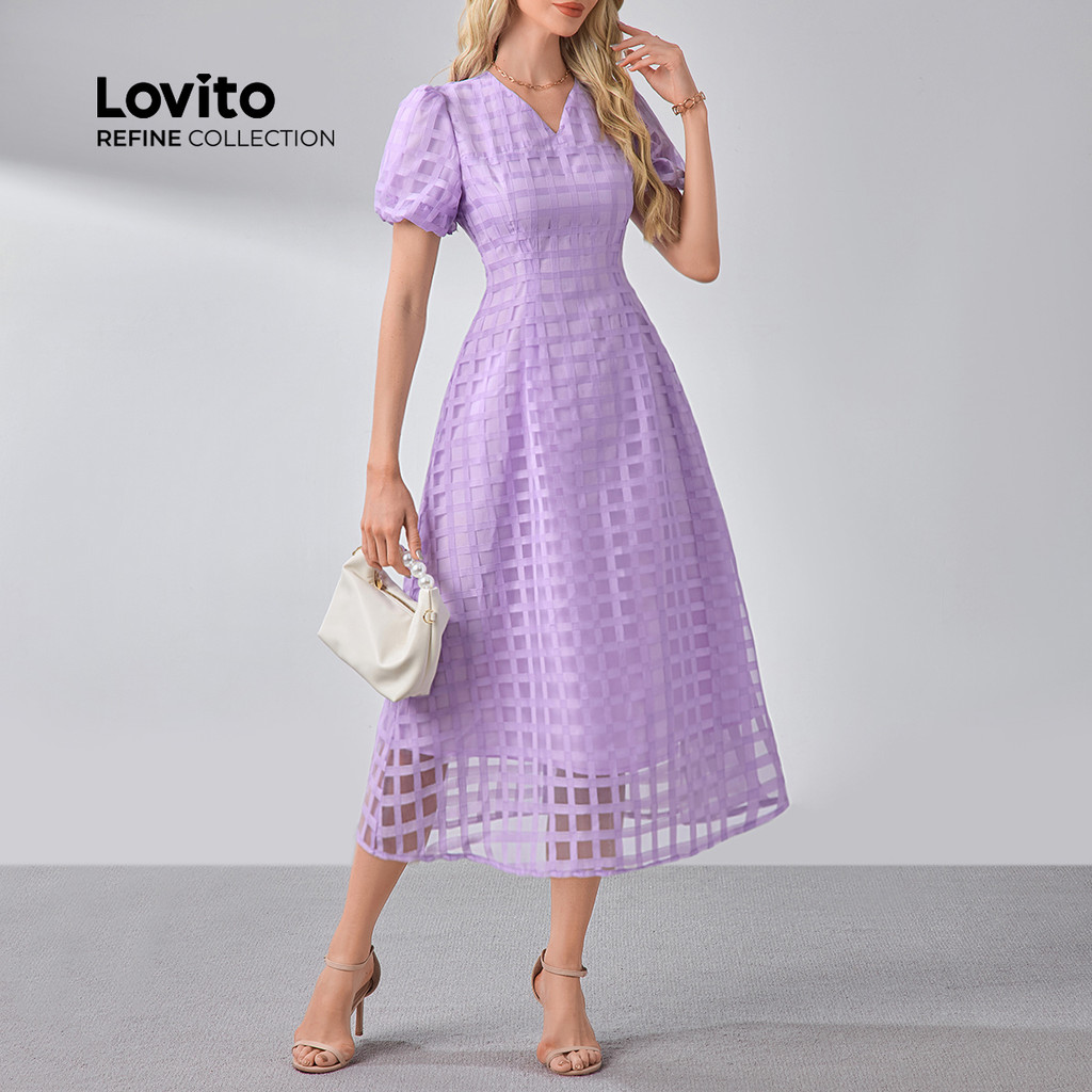 (Lovito Refine) Vestido Elegante para Todas As Estações Vestido Lilás Claro para Mulheres LR13L137