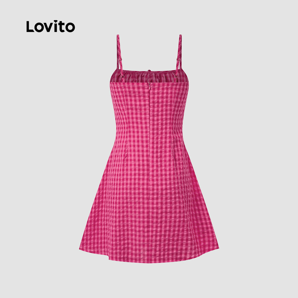 Lovito Vestido Boho em Renda com Zíper, Macio e Confortável, para Primavera/Verão, Vermelho Rosa, L137ED021