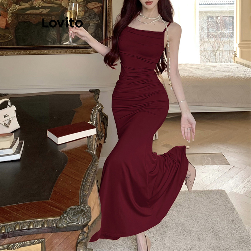 Lovito Vestido Assimétrico Liso e Glamouroso Feminino L108ED664