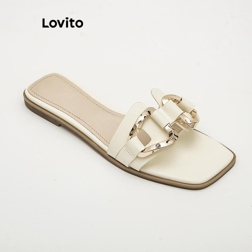 (Trendy) Lovito Sandálias Planas Casuais De Metal Liso Para Mulheres LFA45389