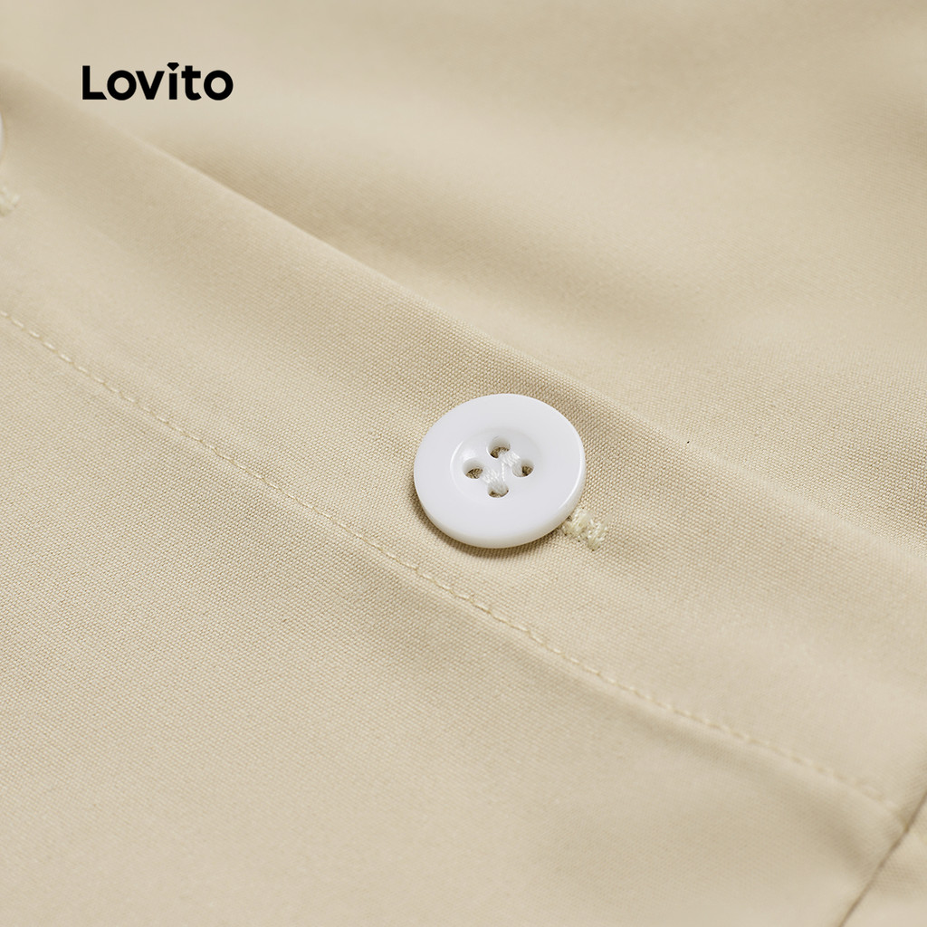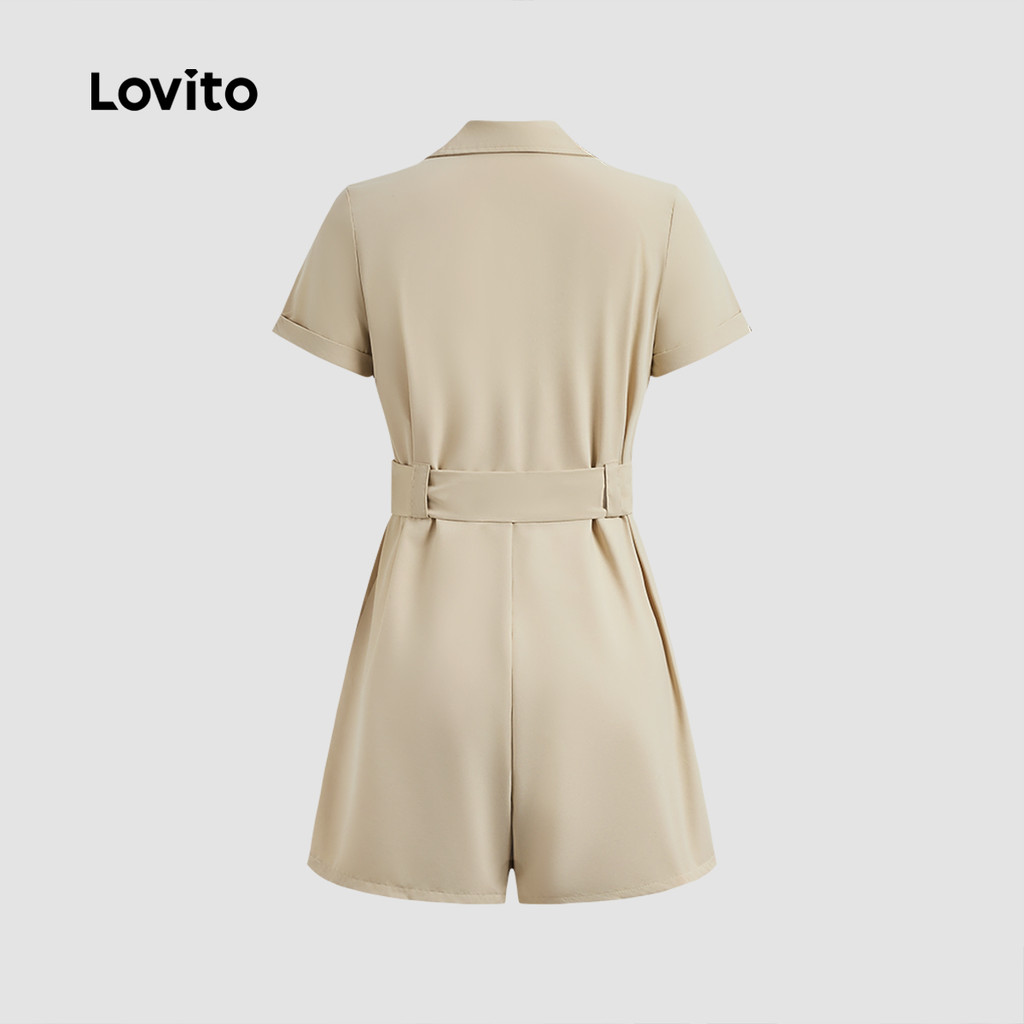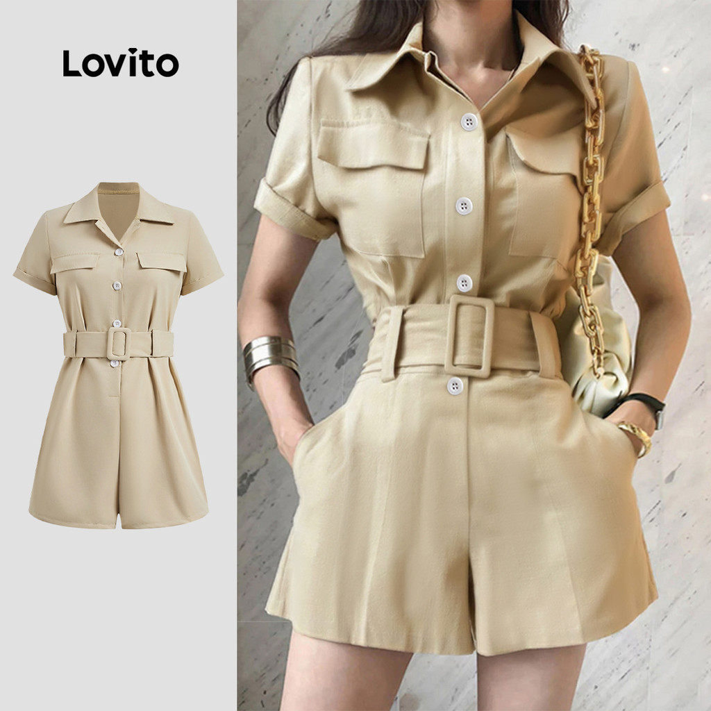 (Trendy) Lovito Macacão Casual liso com bolso falso e botão com cinto para mulheres L123ED187