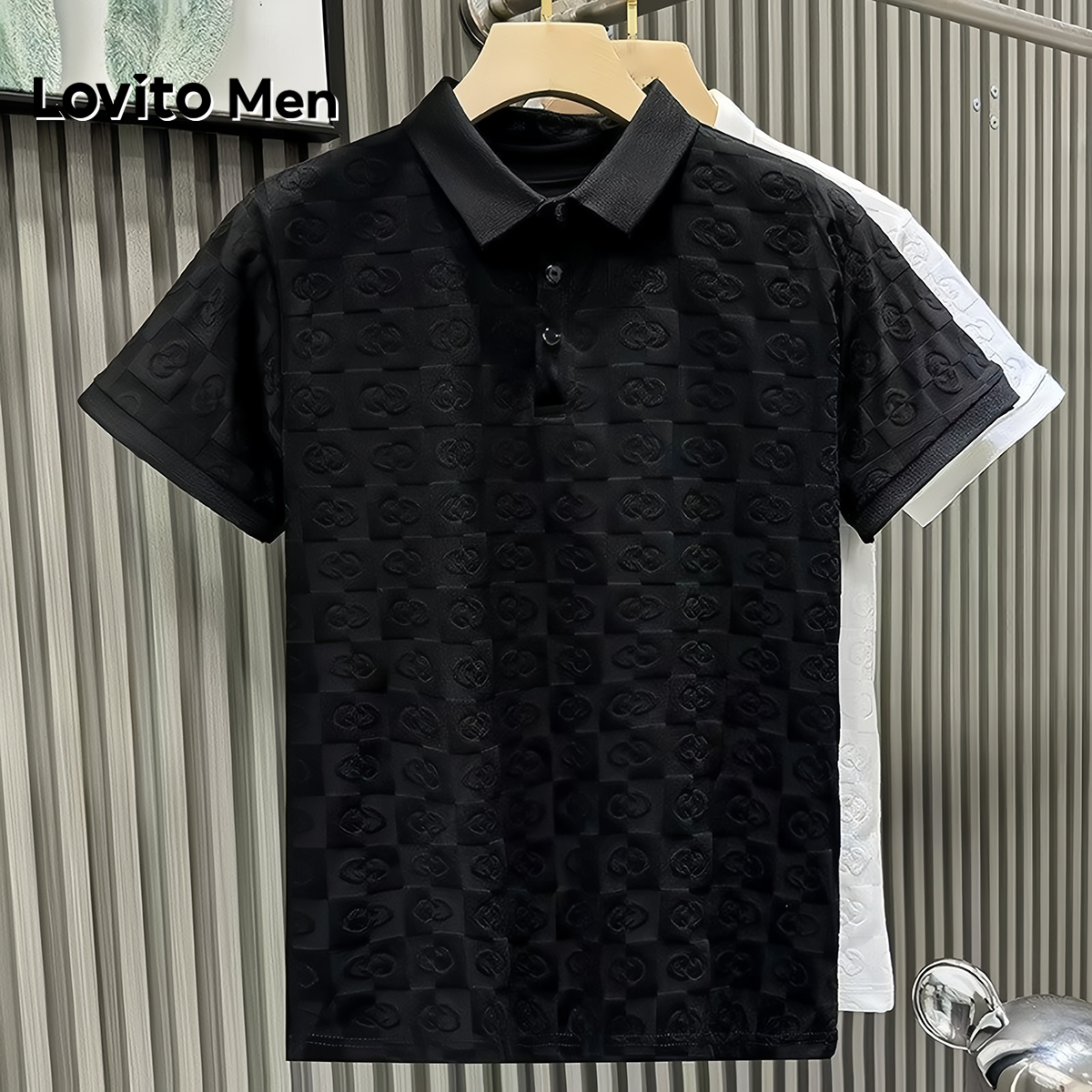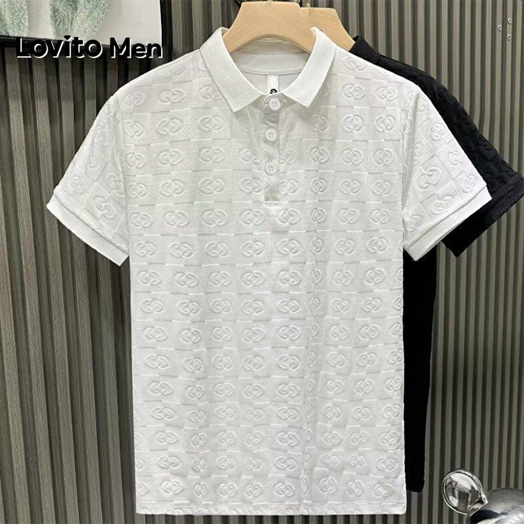 Lovito Camisa Polo Casual com Botões Primavera/verão Camisa Polo Branca para Homens LNE110039