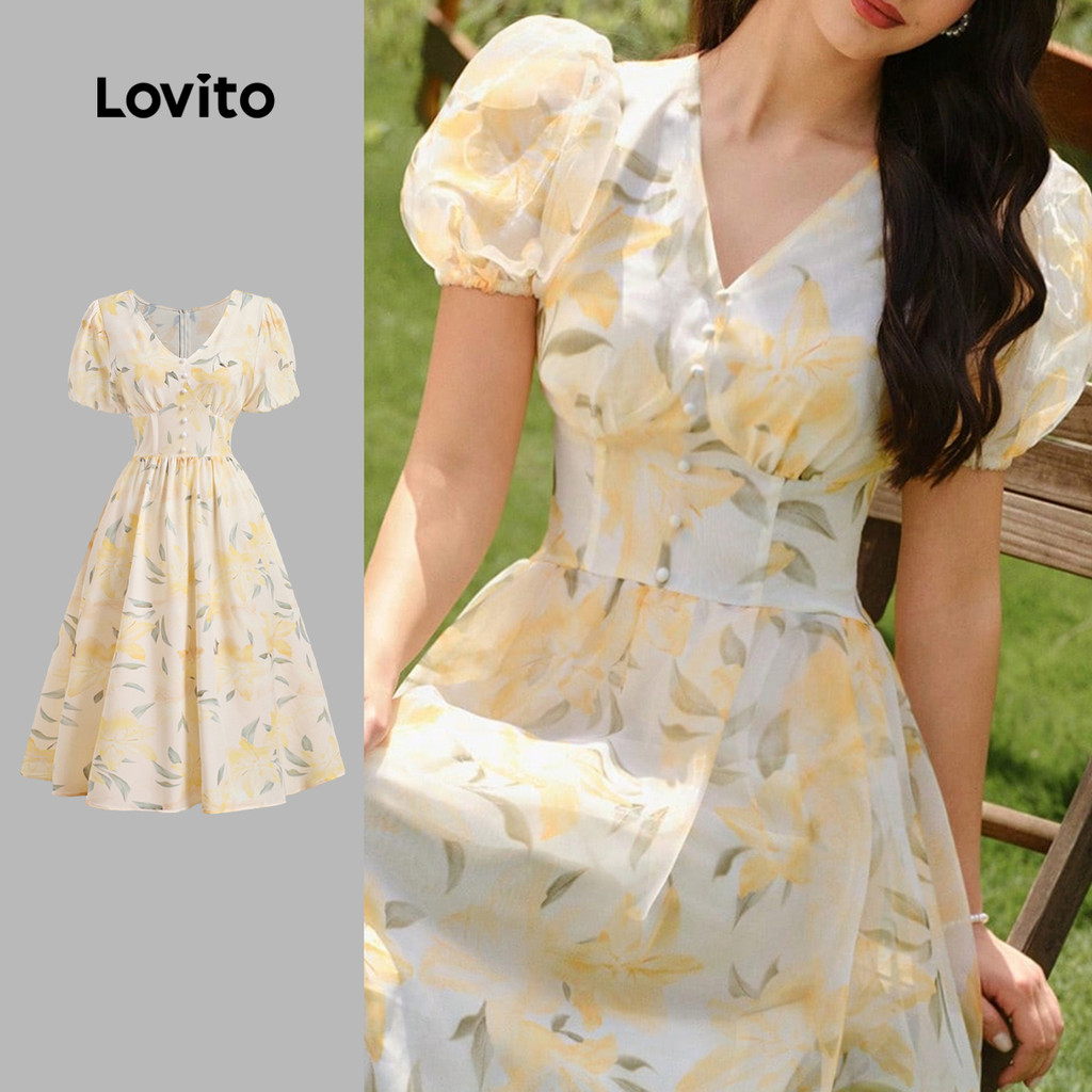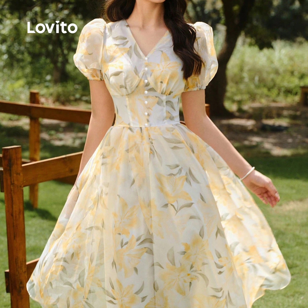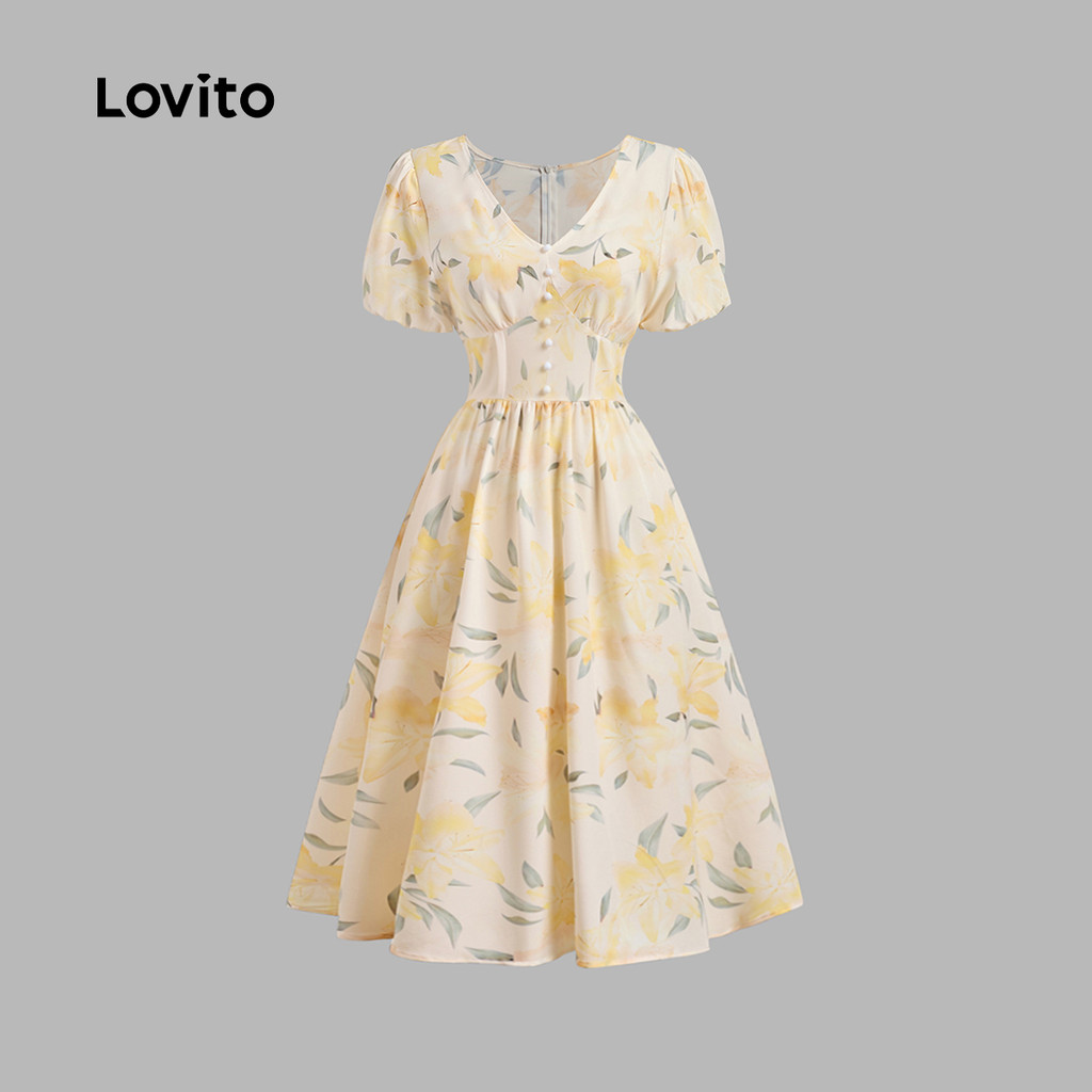 (New) Lovito Vestido Casual com Zíper para Primavera/verão para mulheres L142LD251