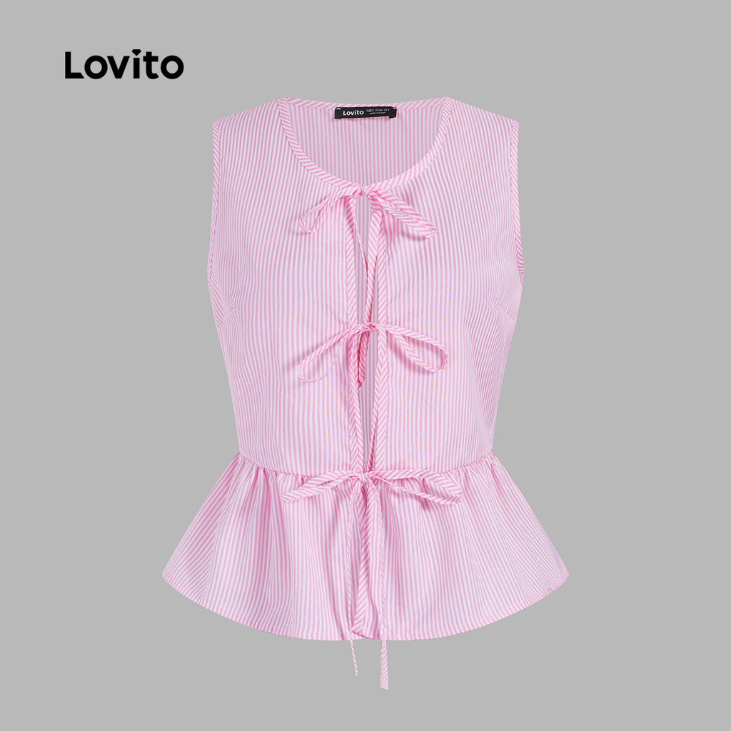 Lovito Regata Feminina Casual Listrada com Laço Frontal para Primavera/Verão L106AD080