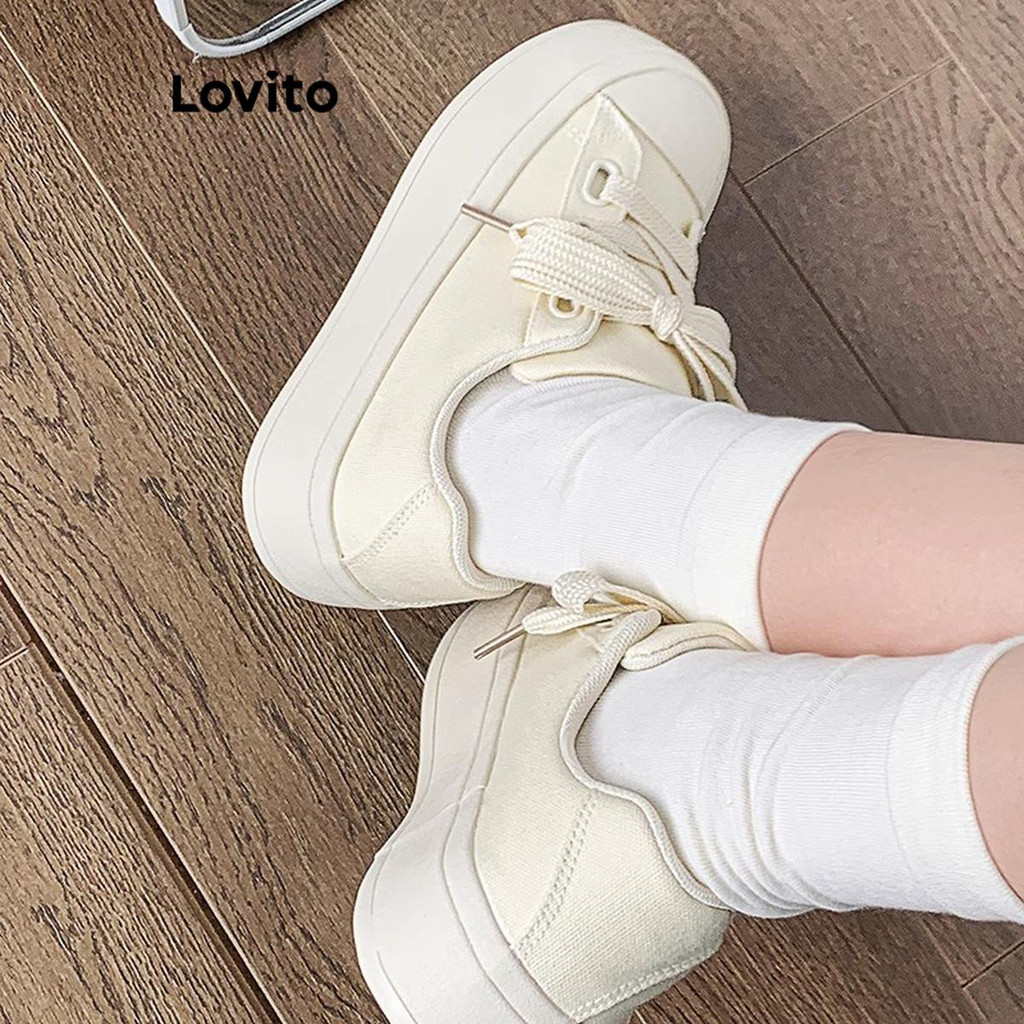 Lovito Tênis Casual de Sola Grossa Liso para Mulheres LFA20372